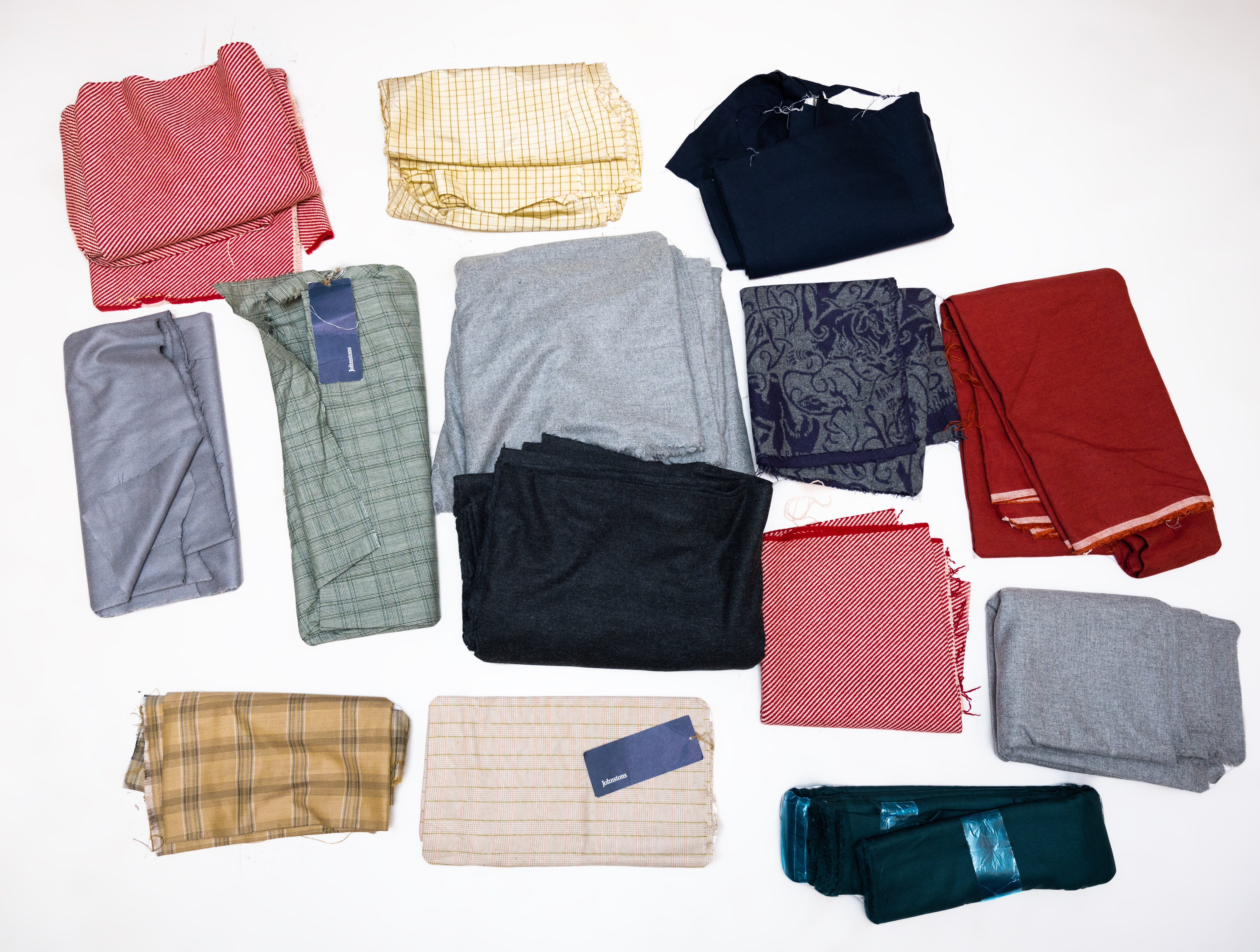 Quattordici scampoli di misura, colore, disegno e materiale differente.