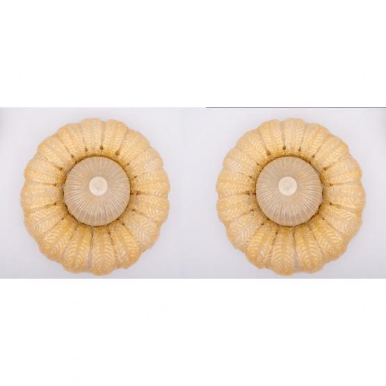 Un piatto ed una ciotola in ceramica invetriata rossa e decorata con cerchi concentrici gialli, firma e numero di serie 34/426.