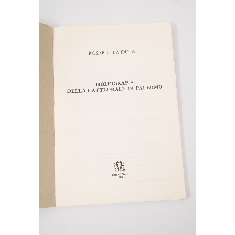 TRE VOLUMI SU PALERMO: 1) Cesare Barbera Azzarello RAFFIGURAZIONI, VEDUTE E PIANTE DI PALERMO DAL SEC. XV AL SEC. XIX, ed. Lussografica, Caltanissetta 2008. Cm 25 x 33. Bella legatura editoriale azzurra con titoli in oro al piatto e al dorso. Sopraccoperta editoriale illustrata. Pp. 636. 2) Rosario La Duca BIBLIOGRAFIA DELLA CATTEDRALE DI PALERMO, ed. Grifo 1988. Cm 24 x 17. Brossura editoriale figurata. Pp. 83. Opera in perfette condizioni e rara a trovarsi. 3) Rosario La Duca IL SOTTOSUOLO DI PALERMO, ed. Palermo 1964. 1^ edizione. Brossura editoriale figurata. Pp. 84 e 2 tavv. f. t. in fine. Opera in perfette condizioni e rara a trovarsi.