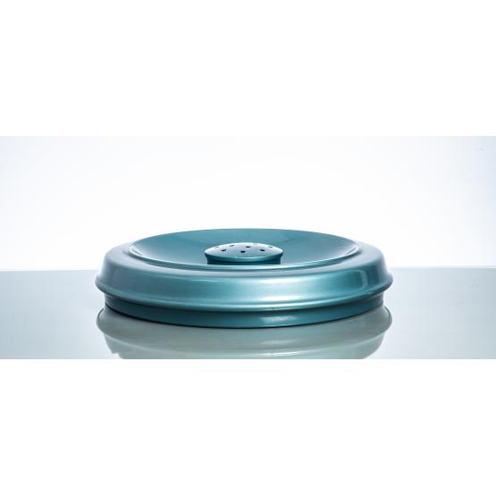 Due vasi in vetro soffiato nei toni viola, uno con corpo a pera e bocca piana introflessa, uno con corpo ad anelli, piede a svasare e bocca circolare estroflessa piana.