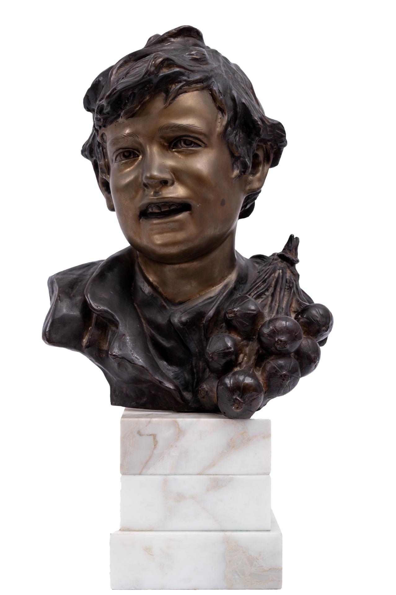 Scultura in bronzo, fusione a cera persa, raffigurante "Scugnizzo", base in marmo bianco.