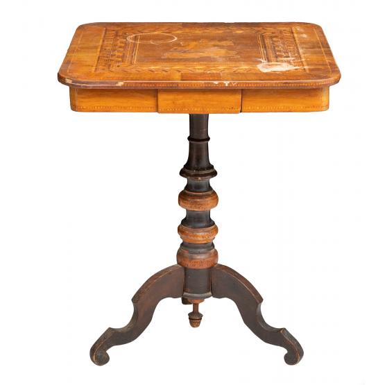 MOBILETTO a due cassetti in legno laccato e decorato a motivi floreale e fogliaceo.
