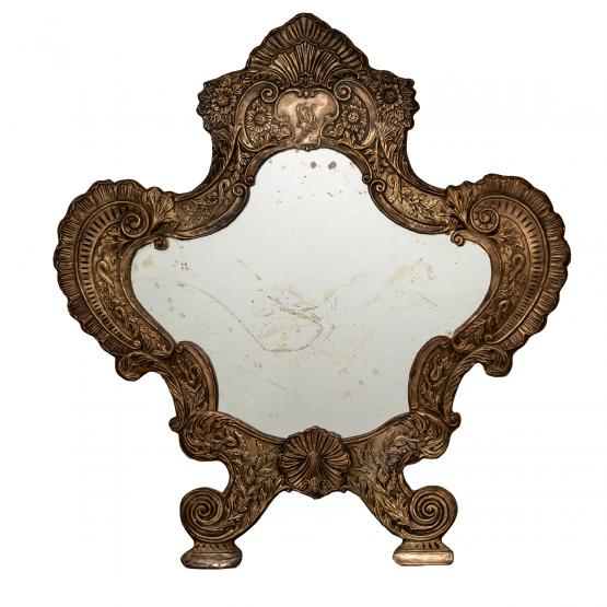CORNICE a pagnotta in legno dorato, argento e mistura.