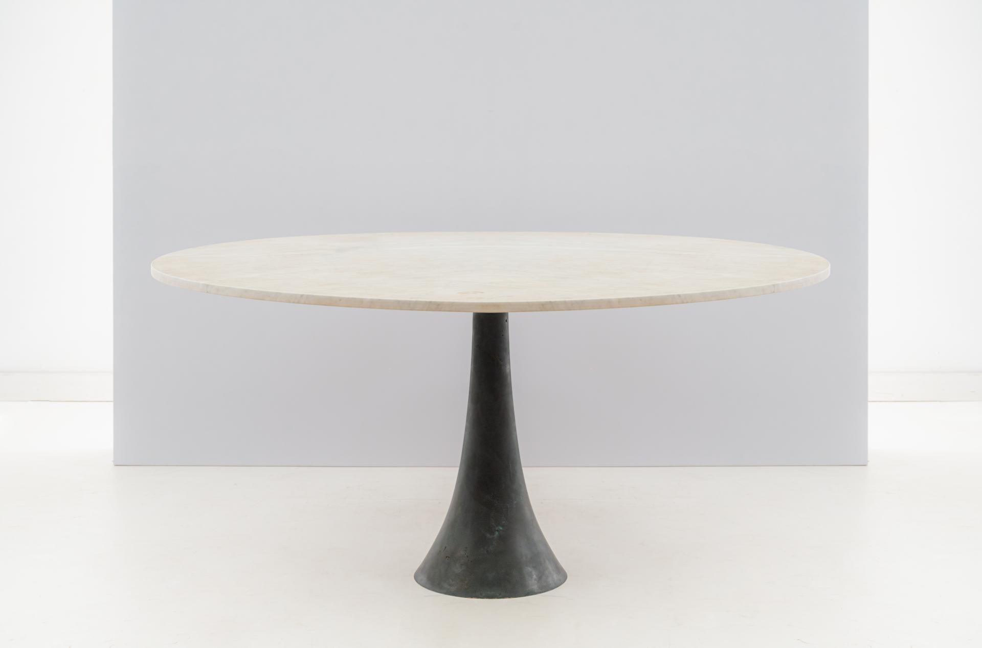 Tavolo modello “302” in fusione di bronzo finita al tornio e piano in marmo di Carrara.