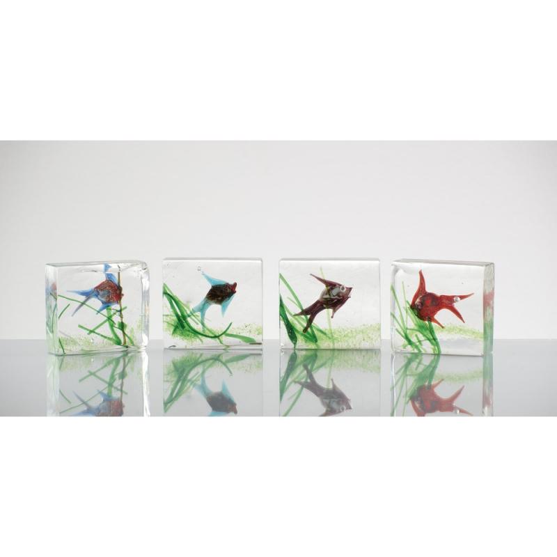 Quattro acquari in vetro di Murano di grosso spessore, colori vari (piccoli difetti).