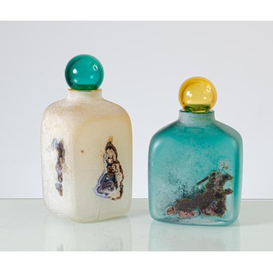 Vaso a cartoccio in vetro soffiato satinato verde, piegato a caldo.