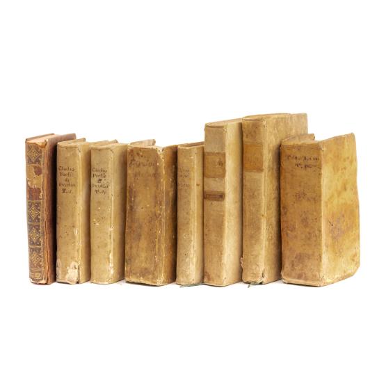 CINQUE VOLUMI SULLA STORIA DELLA LINGUA ITALIANA: 1) Luigi Gelmetti LA LINGUA PARLATA A FIRENZE E LA LINGUA LETTERARIA D’ITALIA, ed. Milano, Presso N. Battezzati e B. Saldini 1874. In 8° piccolo. Brossura editoriale e tagli marginosi. In ottime condizioni. Pp. 343. 2) Salvatore Corticelli REGOLE ED OSSERVAZIONI DELLA LINGUA TOSCANA, ed. Napoli 1827. In 8° piccolo. Un volume che raccoglie i tre tomi dell’opera. Bruniture alle pagine e fioriture. Legatura successiva in mezza pelle con piatti marmorizzati e titoli e fregi in oro al dorso. Pp. XVI, 288. 3) RIME E PROSE DEL BUON SECOLO DELLA LINGUA TRATTE DA MANOSCRITTI E IN PARTE INEDITE, ed. Lucca, Giuseppe Giusti 1852. In 8°. Edizione e tiratura limitata a 338 esemplari. Il nostro è il n. 279. Legatura rigida in mezza tela e titolo applicato. Alcune macchioline e sporcizie sparse. In buone condizioni. Pp. XXVI, 184 (2). 4) S. Morpurgo LE OPERE VOLGARI A STAMPA DEI SECOLO XIII E XIV INDICATE E DESCRITTE DA F. ZAMBRINI, ed. Bottega d’Erasmo 1961 ma ristampa fototipica della edizione per i tipi di Zanichelli del 1929. In 8° grande. Legatura editoriale in piena tela con titoli in oro al tassello al dorso. pp. XII, 373. In ottime condizioni. 5) Gianfrancesco Galeani Napione DELL’USO E DEI PREGI DELLA LINGUA ITALIANA, Milano, Nicolò Bettoni 1824. In 24°. Tre libri in unica rilegatura (libro II e III a numerazione continua). Legatura coeva in mezza pelle con piatti cartonati. Opera rifilata e con tagli spruzzati. Bruniture del tempo alle pagine. In buone condizioni. Opera piuttosto rara. Pp. 237; 276.