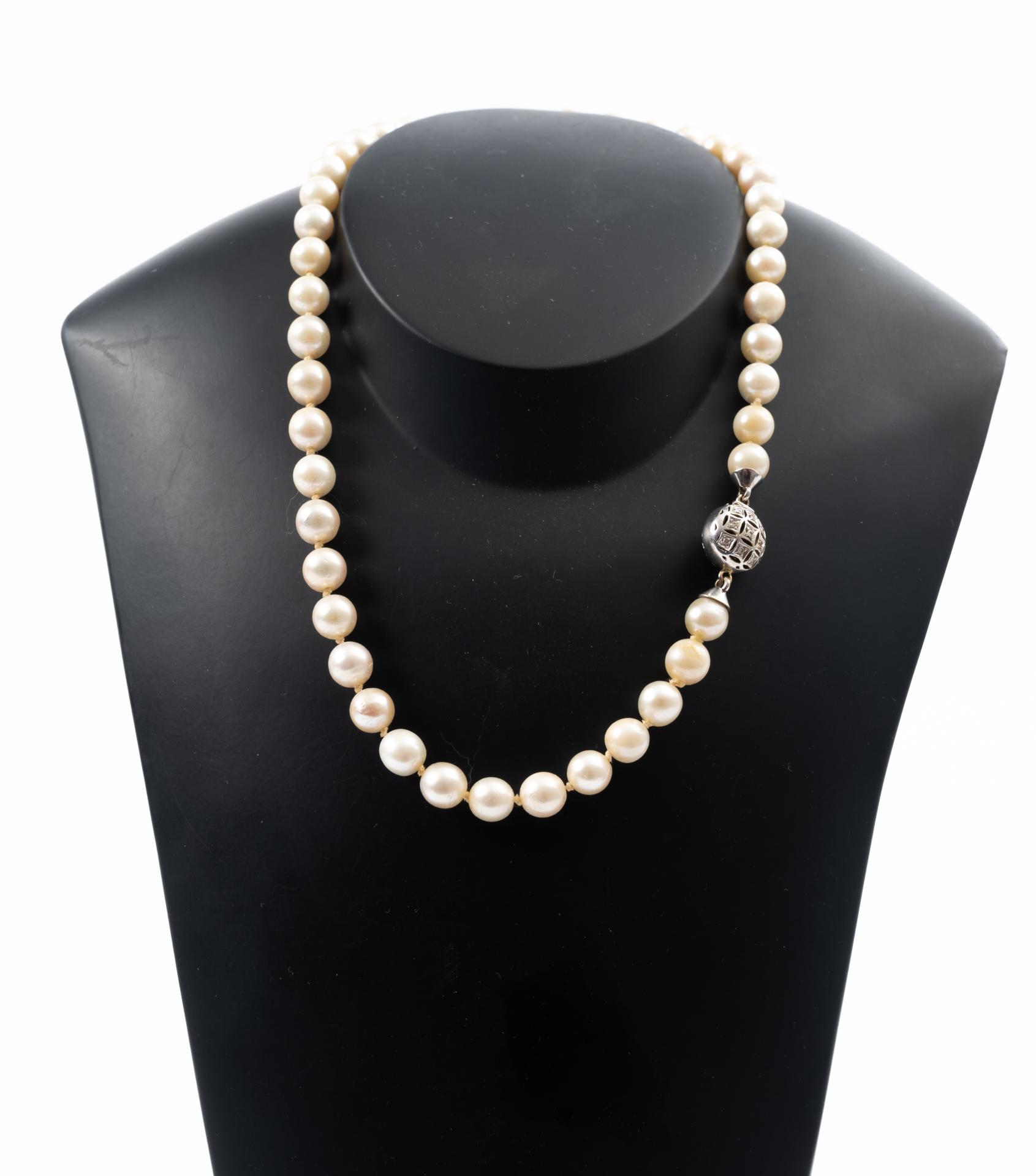 COLLANA di perle coltivate Giappone con susta in oro bianco 18 KT (g. 32,65 peso di stima).