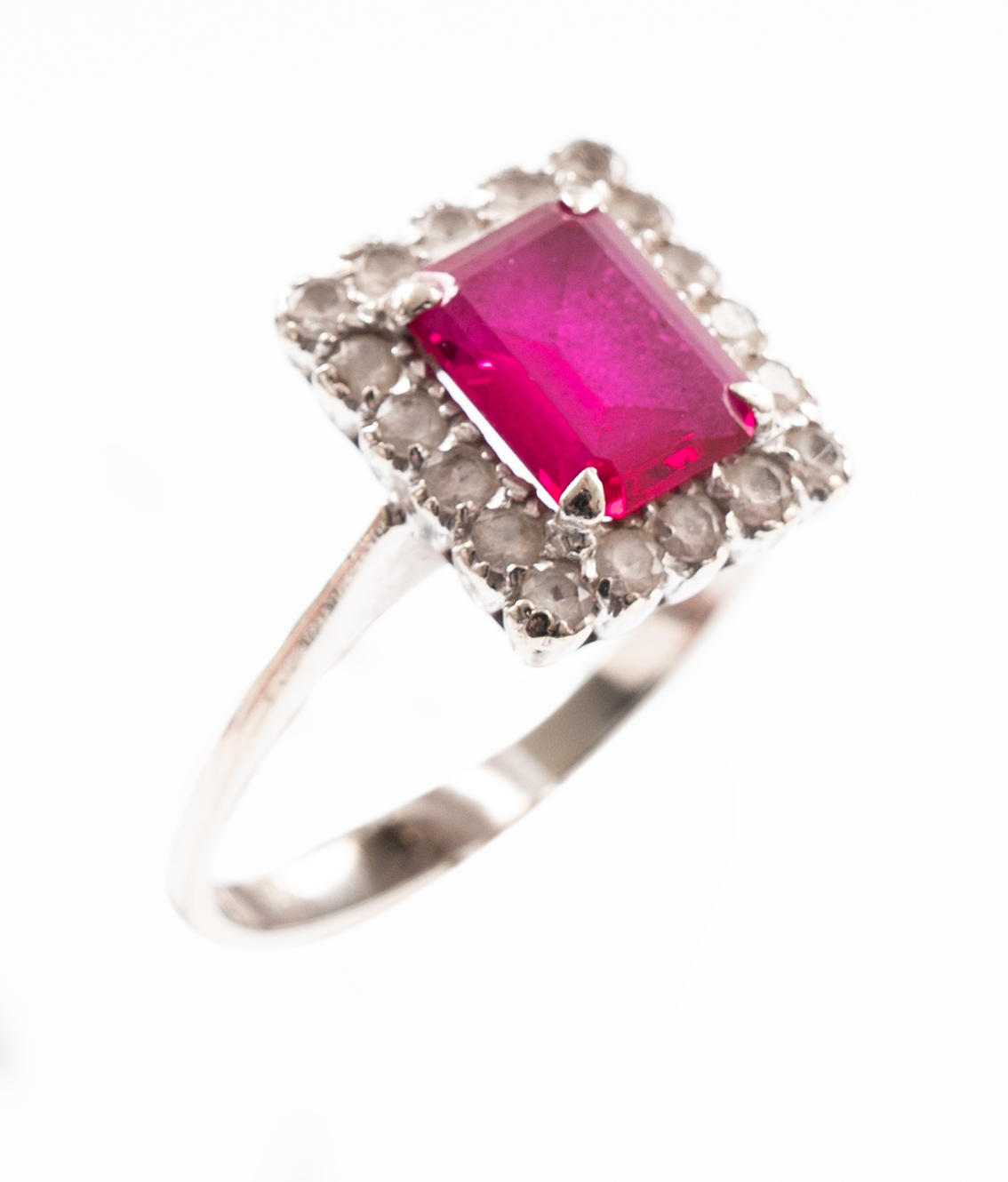 ANELLO in oro bianco 18 KT e pietre di sintesi (g. 3,30).