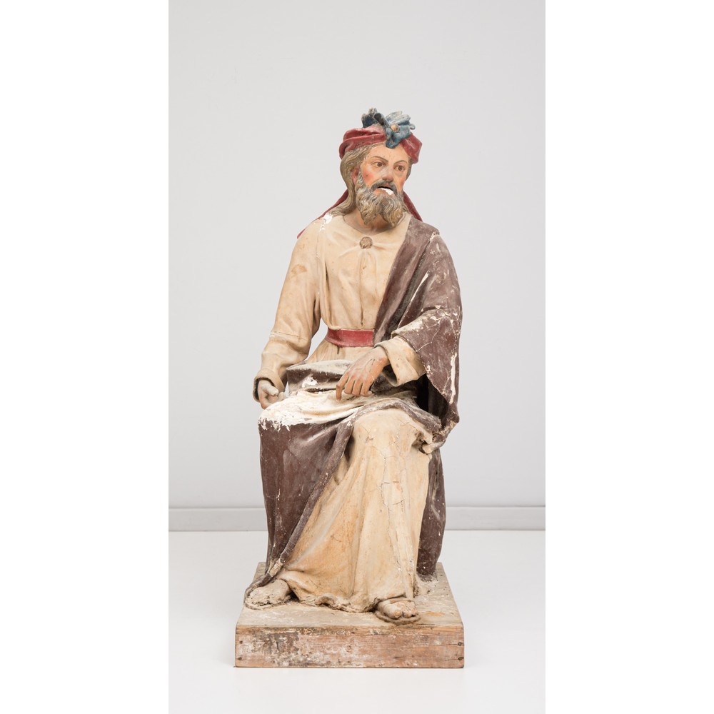 Sei grandi statue in legno e cartapesta policroma facenti parte di un presepe già collocato nella cappella di un palazzo nobiliare della Sicilia meridionale.