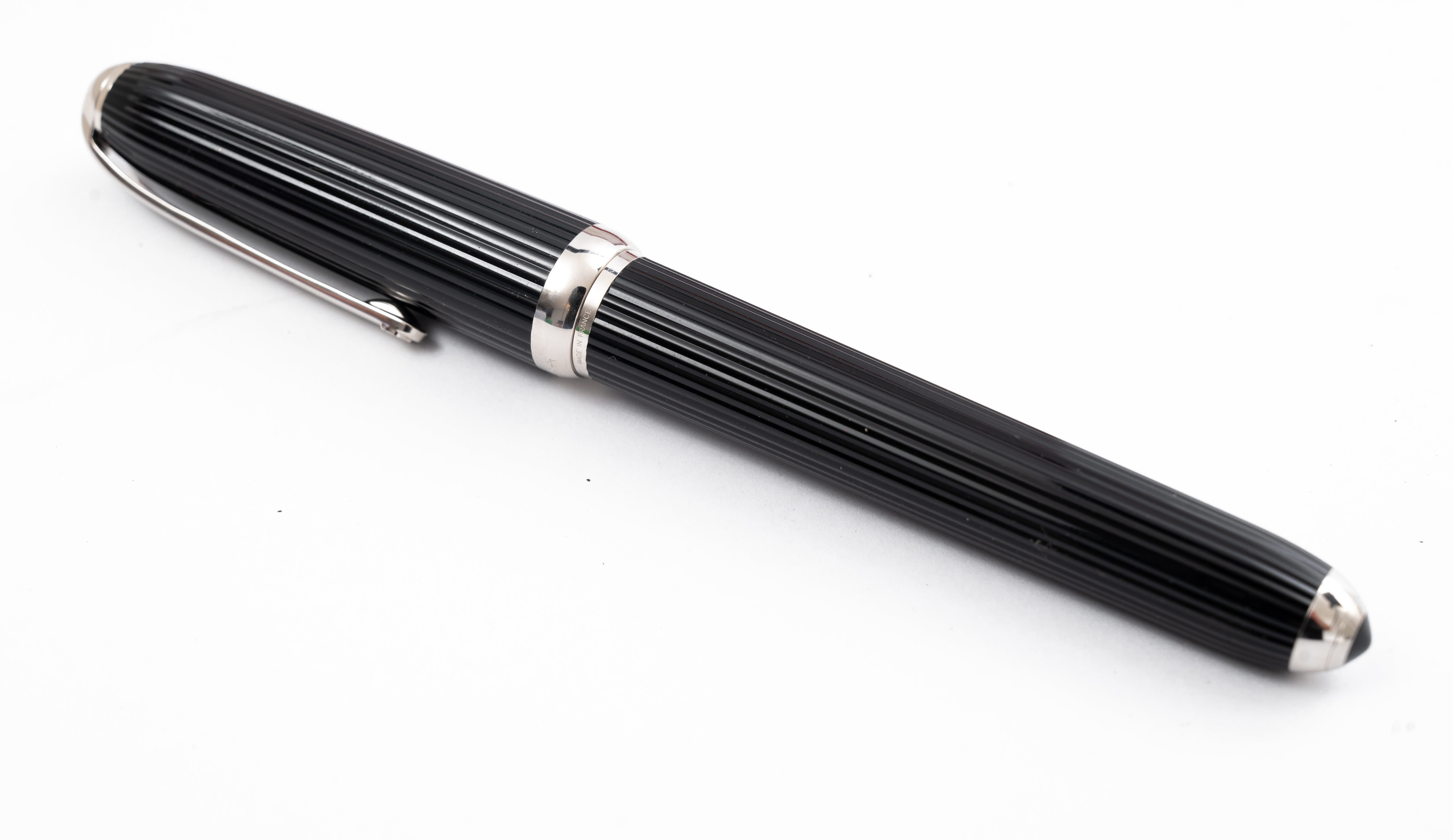 Penna a sfera Louis in acciaio e composite nero decoro Godron con custodia originale.
