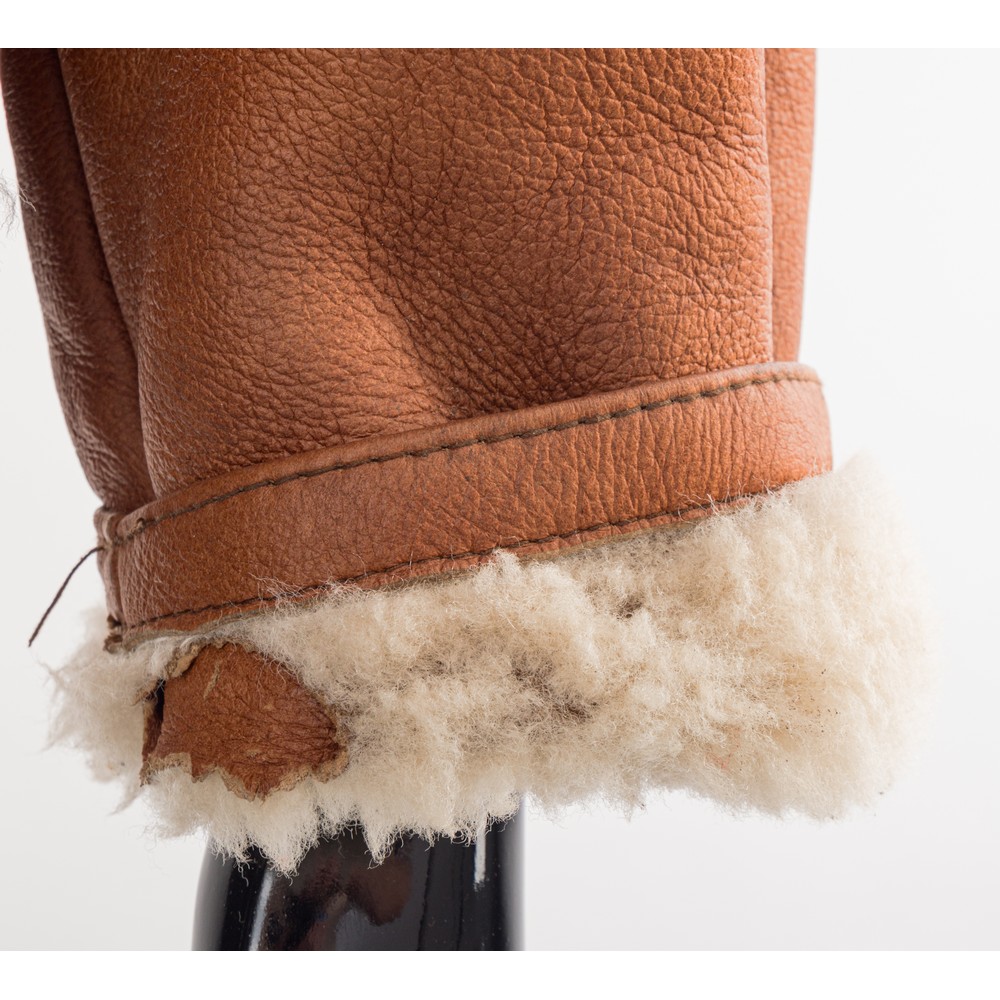 Giubbotto in montone vintage anni ‘80. Piccolo strappo sulla maglia del polsino.