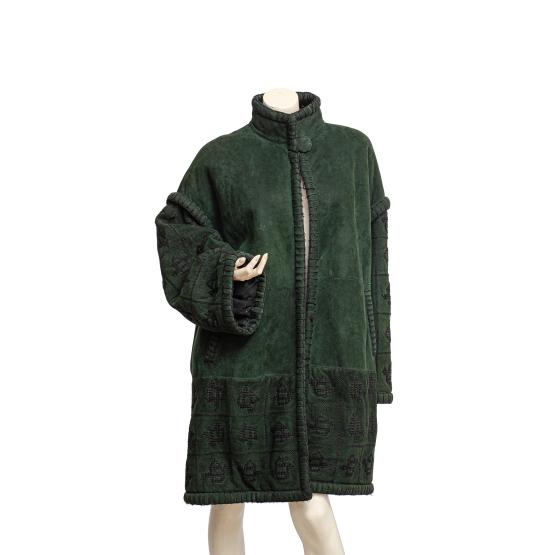 Cappello in toulle di seta animato, rouges in seta plisse, decori in toulle e paillettes nere, coccarde in seta nera rigata in marrone, piume di struzzo e due fiori in laterali in seta celesti. Scatola originale. Lievi difetti.