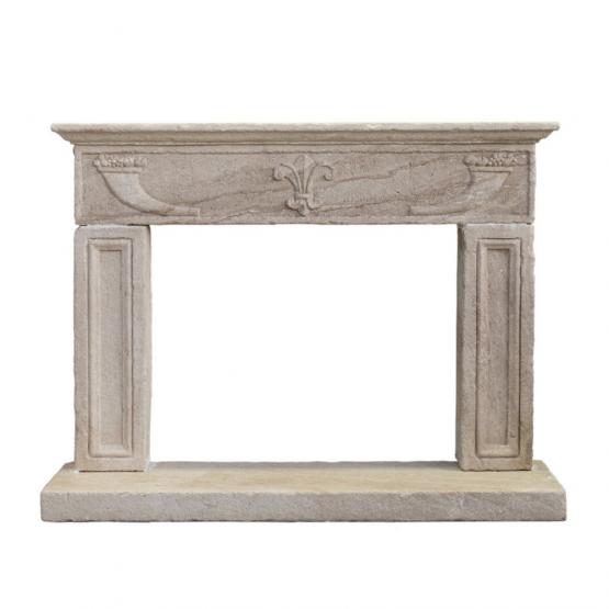 in marmo con due alari, due parascintille e portalegna in ferro.
