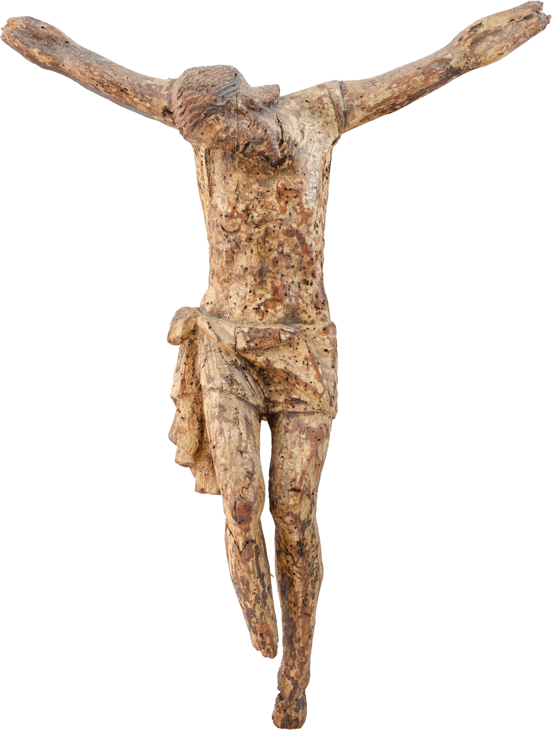 Scultura raffigurante "Cristo" in legno laccato con tracce di doratura (mancanze).