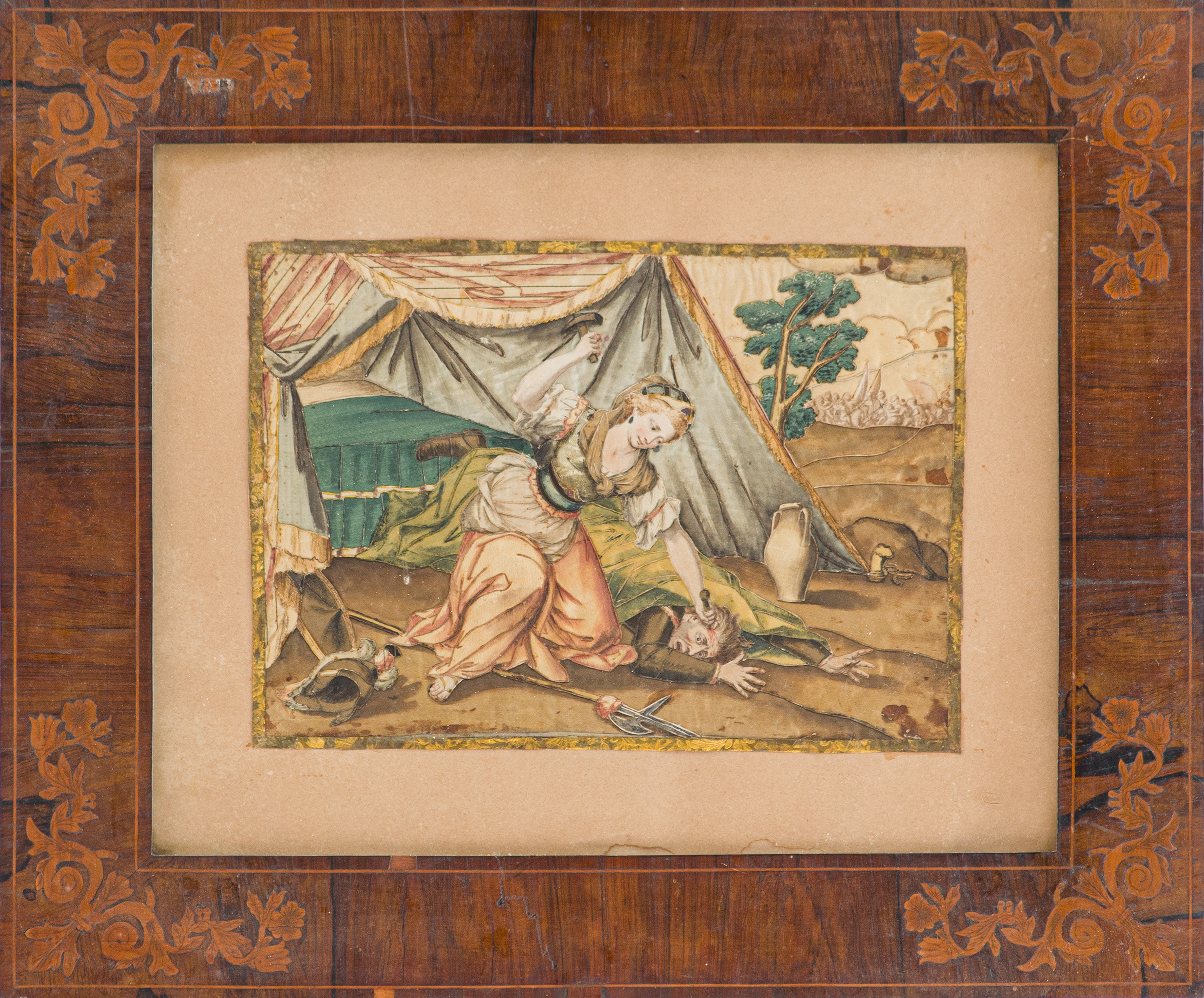 SCUOLA SICILIANA DEL XVIII SECOLO, Pittura su stoffa di seta