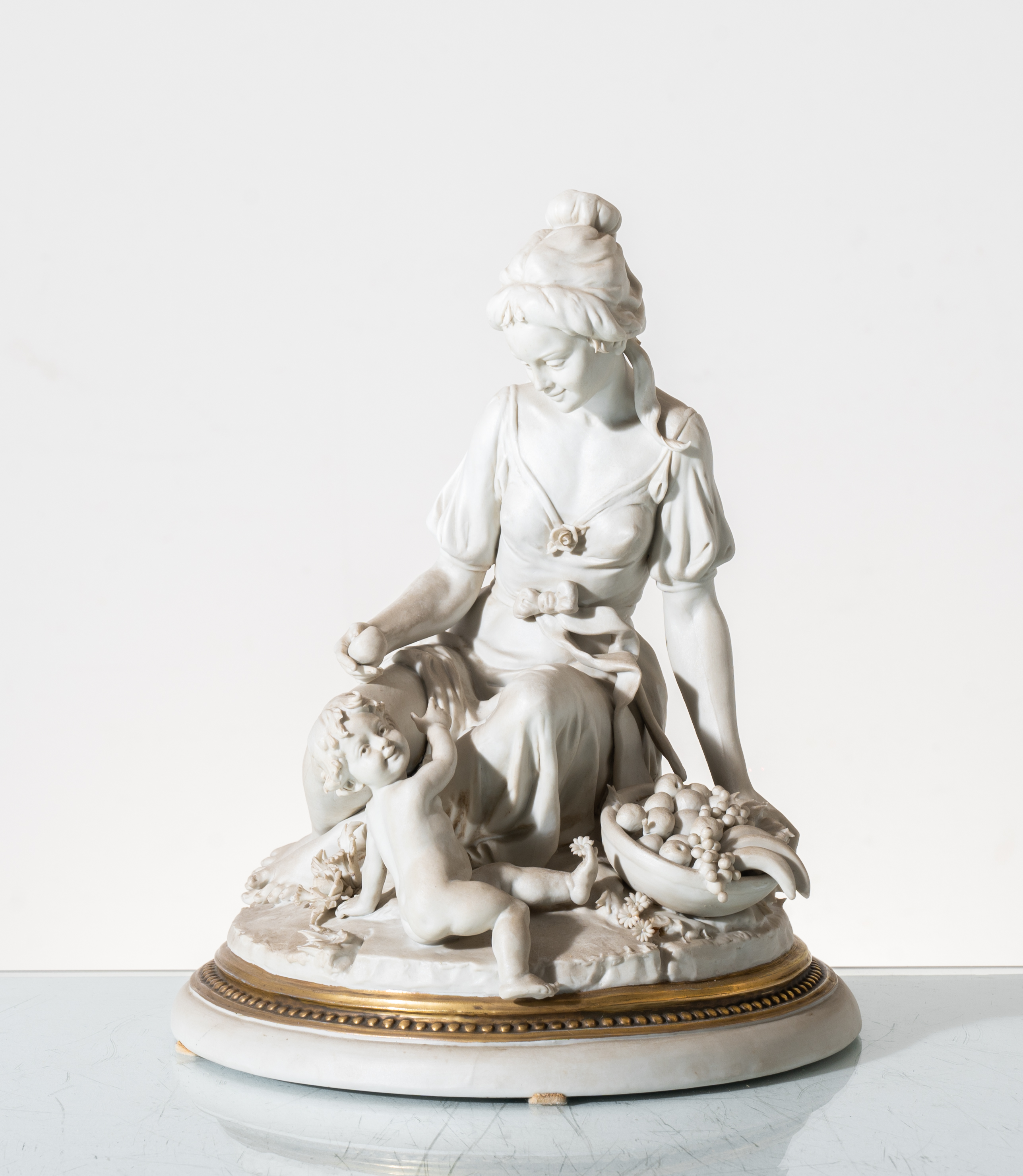 Scultura in biscuit raffigurante "Figura femminile con bambino".