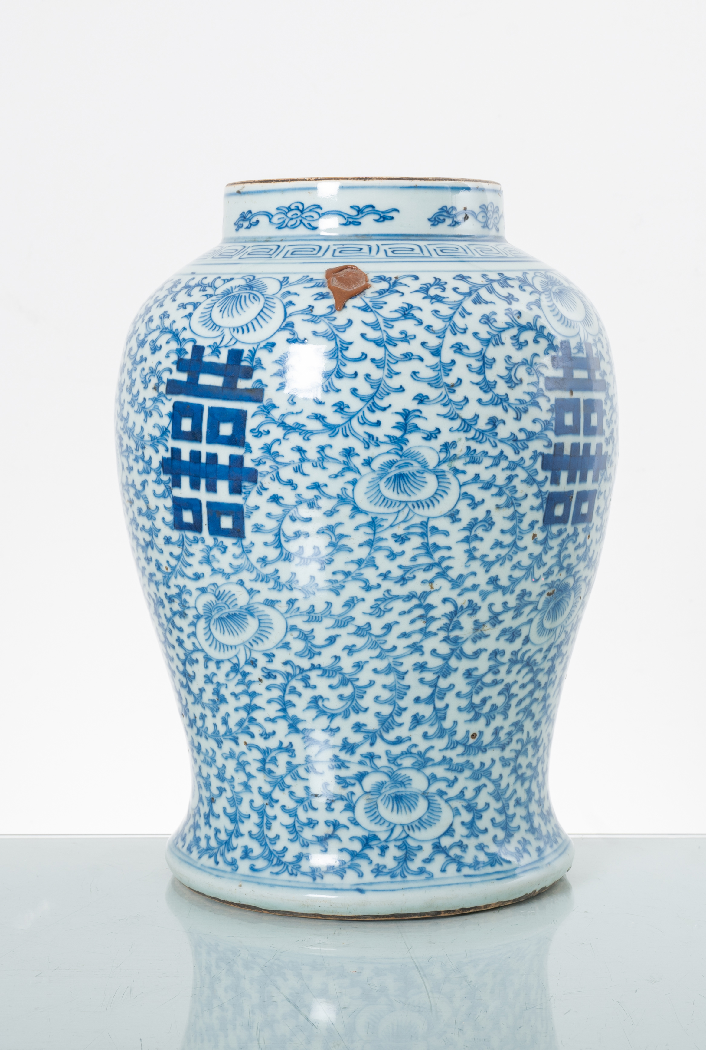 Vaso in porcellana bianca decorata nei toni del blu.