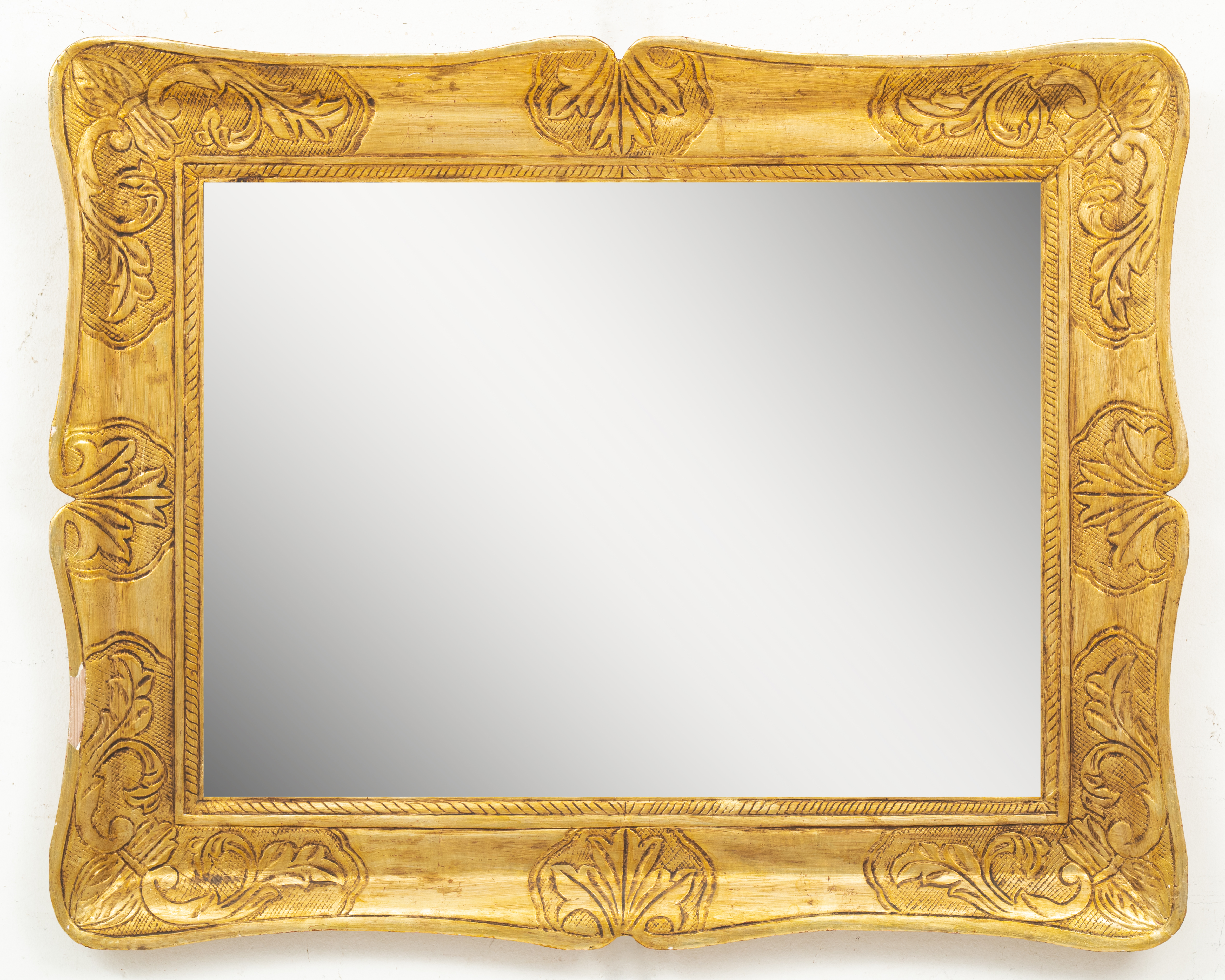 Specchiera a guantiera in legno dorato ad argento a mecca (usure).
