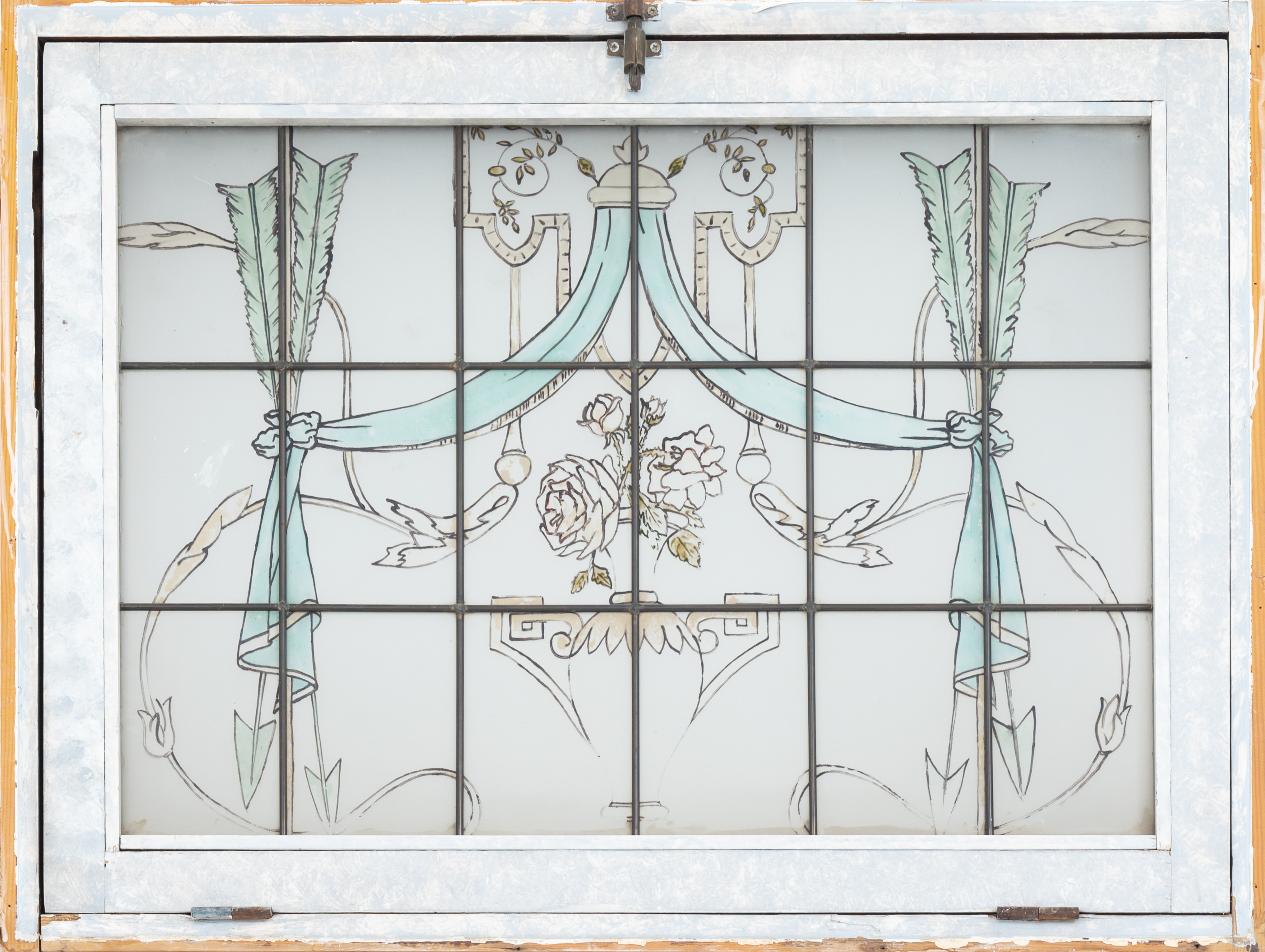 Finestra in legno con vetri cattedrale del XIX secolo.