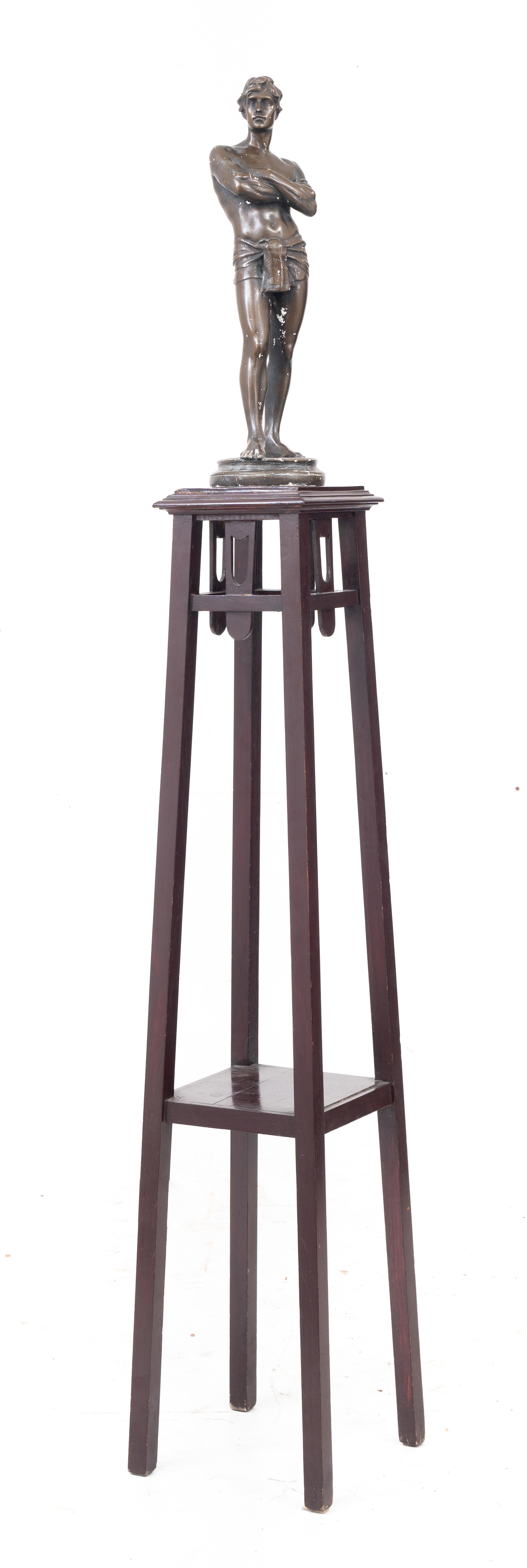 Cantone in legno con scultura in schiuma di gesso raffigurante "Figura maschile".