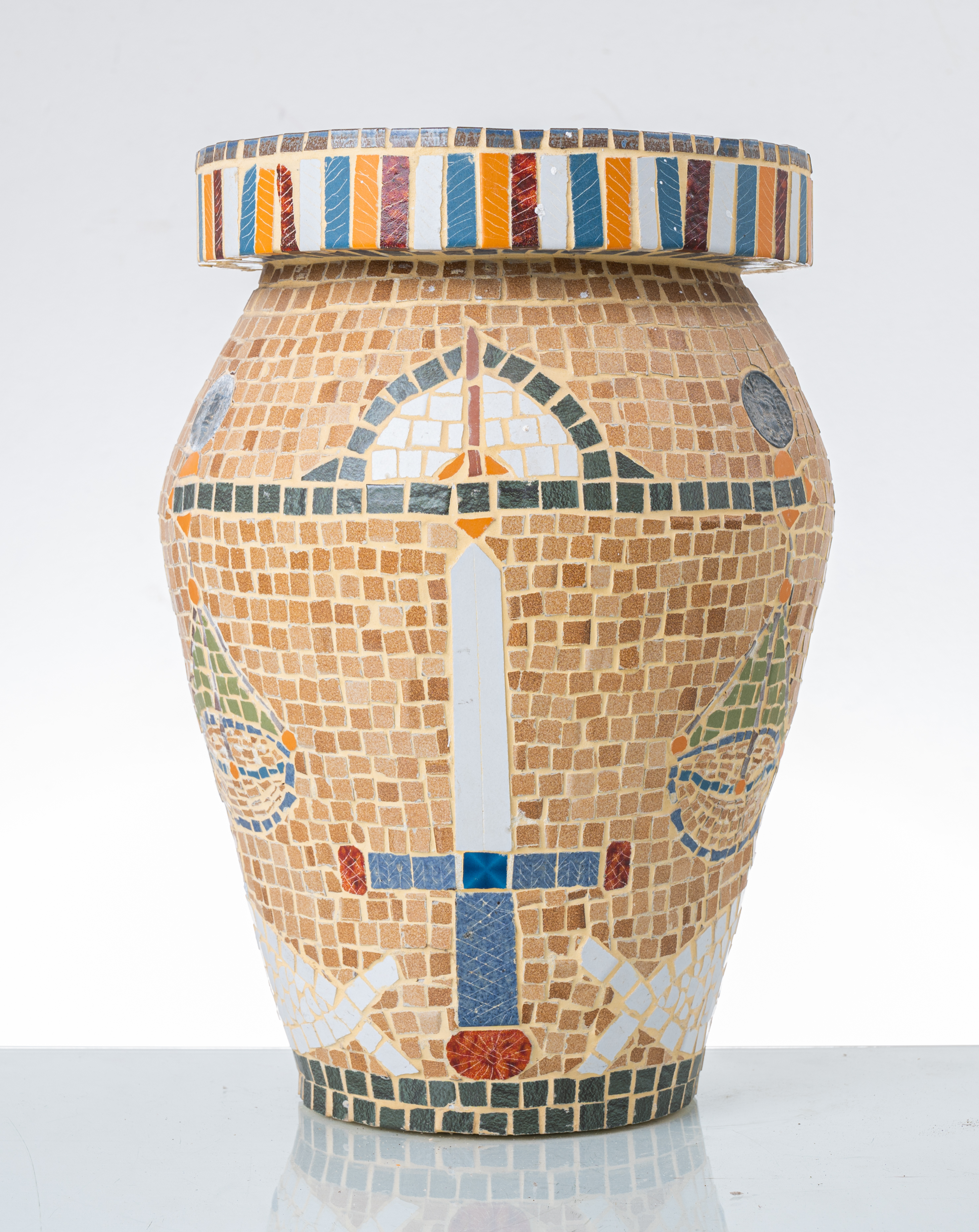 Portaombrelli in ceramica rivestita a motivo di mosaico.