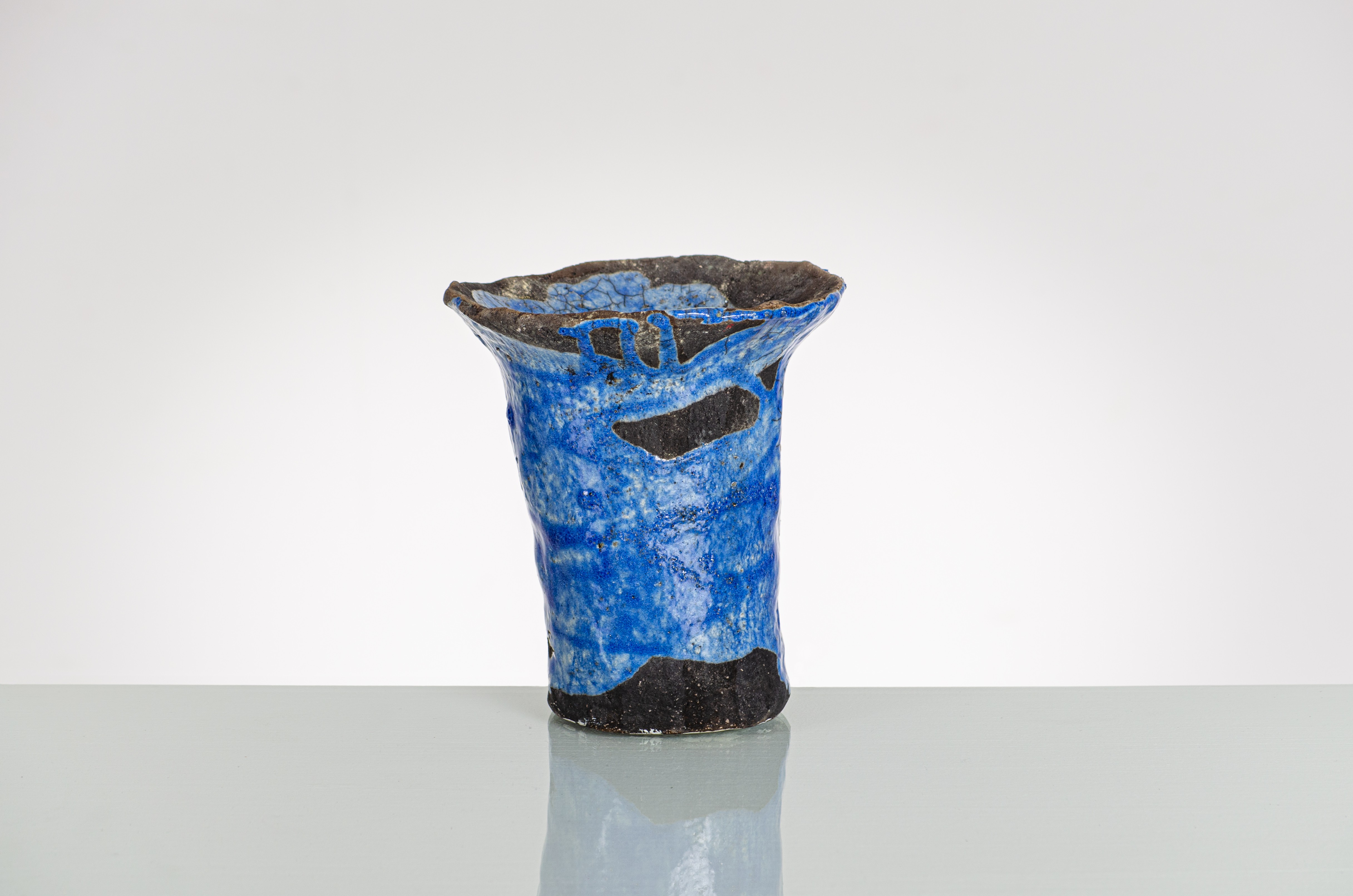 Vaso in ceramica decorata e smaltata. Firma e simbolo grafico sotto la base.