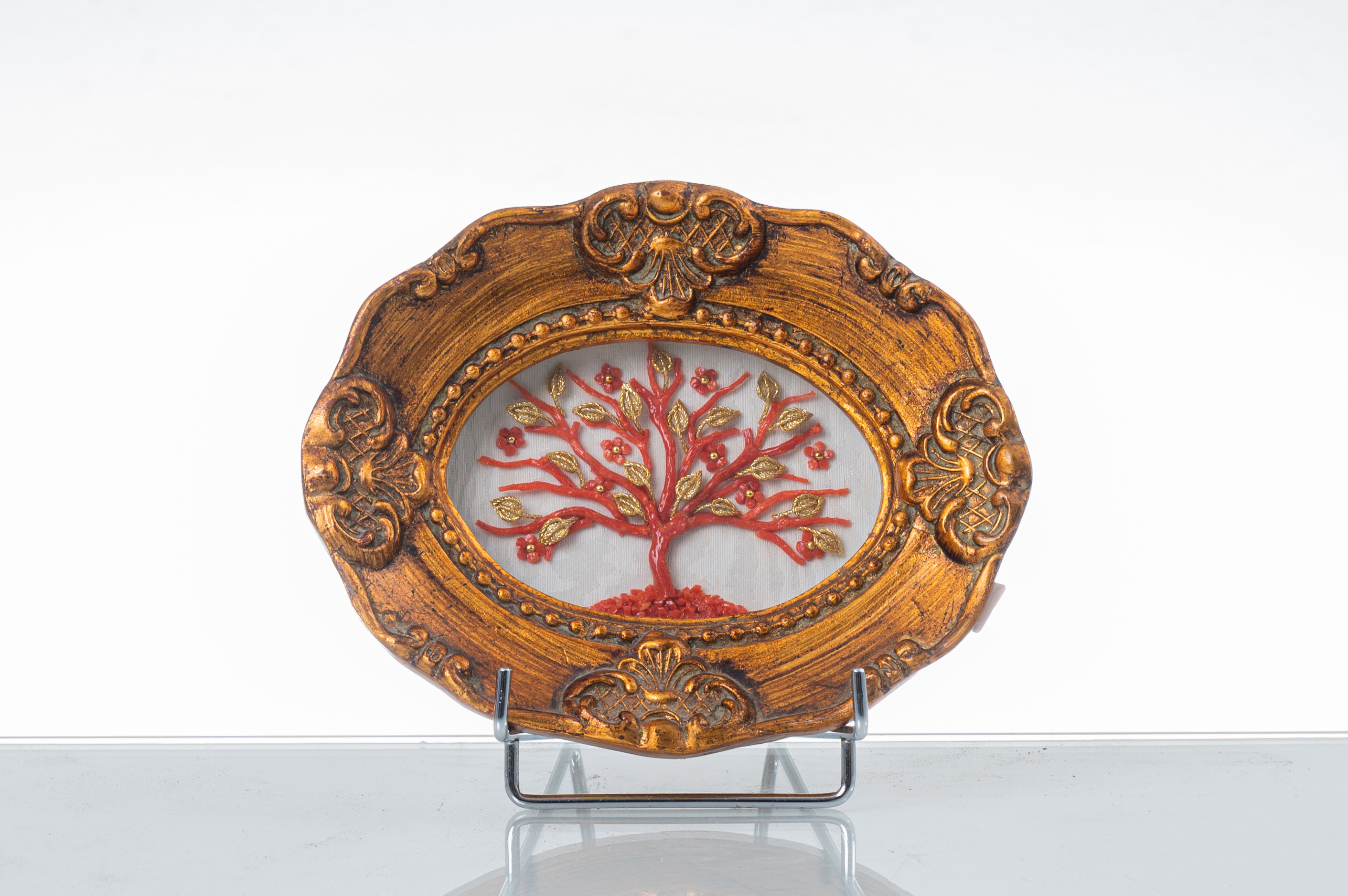 Composizione in corallo raffigurante "Albero" entro teca di forma ovale.