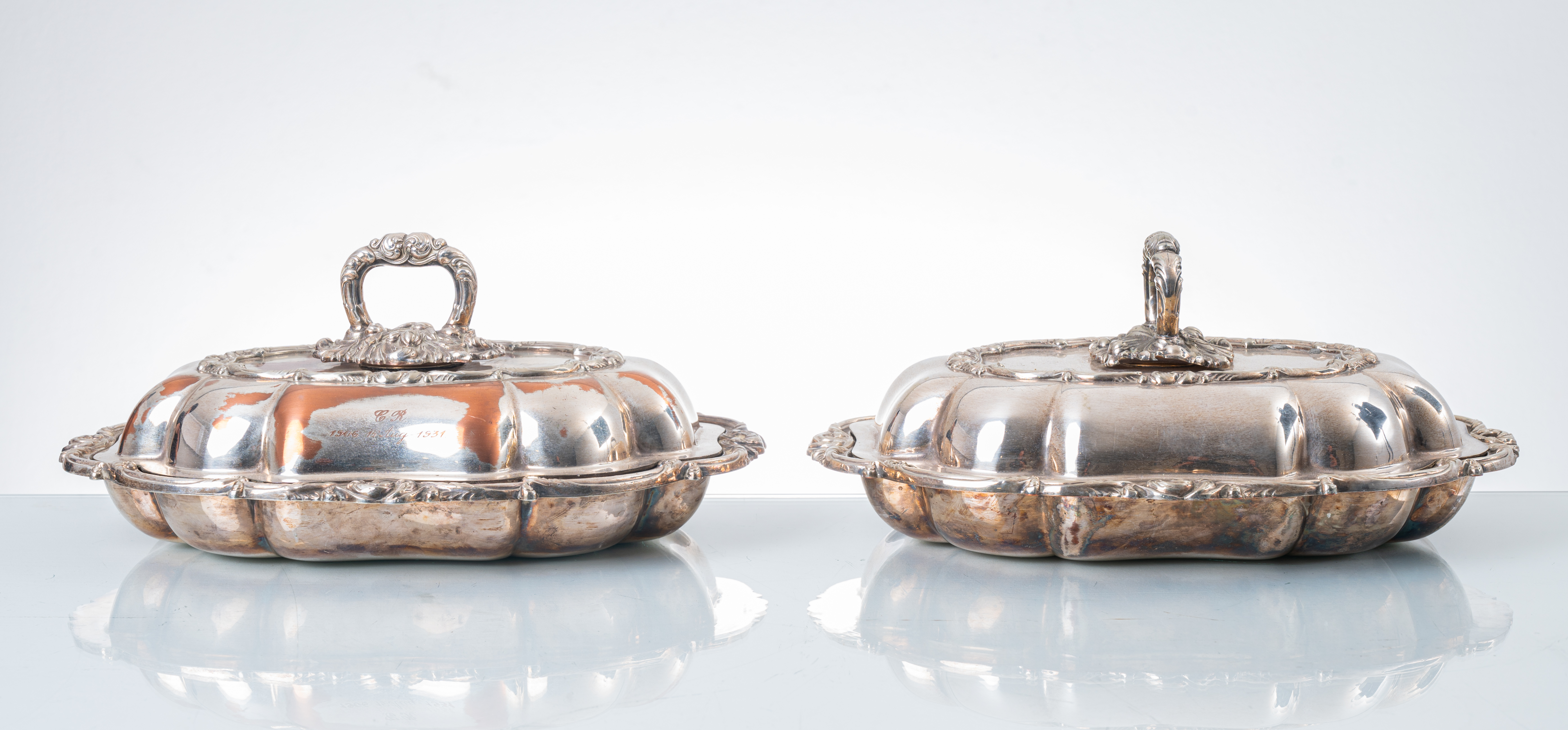 MANIFATTURA INGLESE DEL XIX SECOLO, Coppia di legumiere
