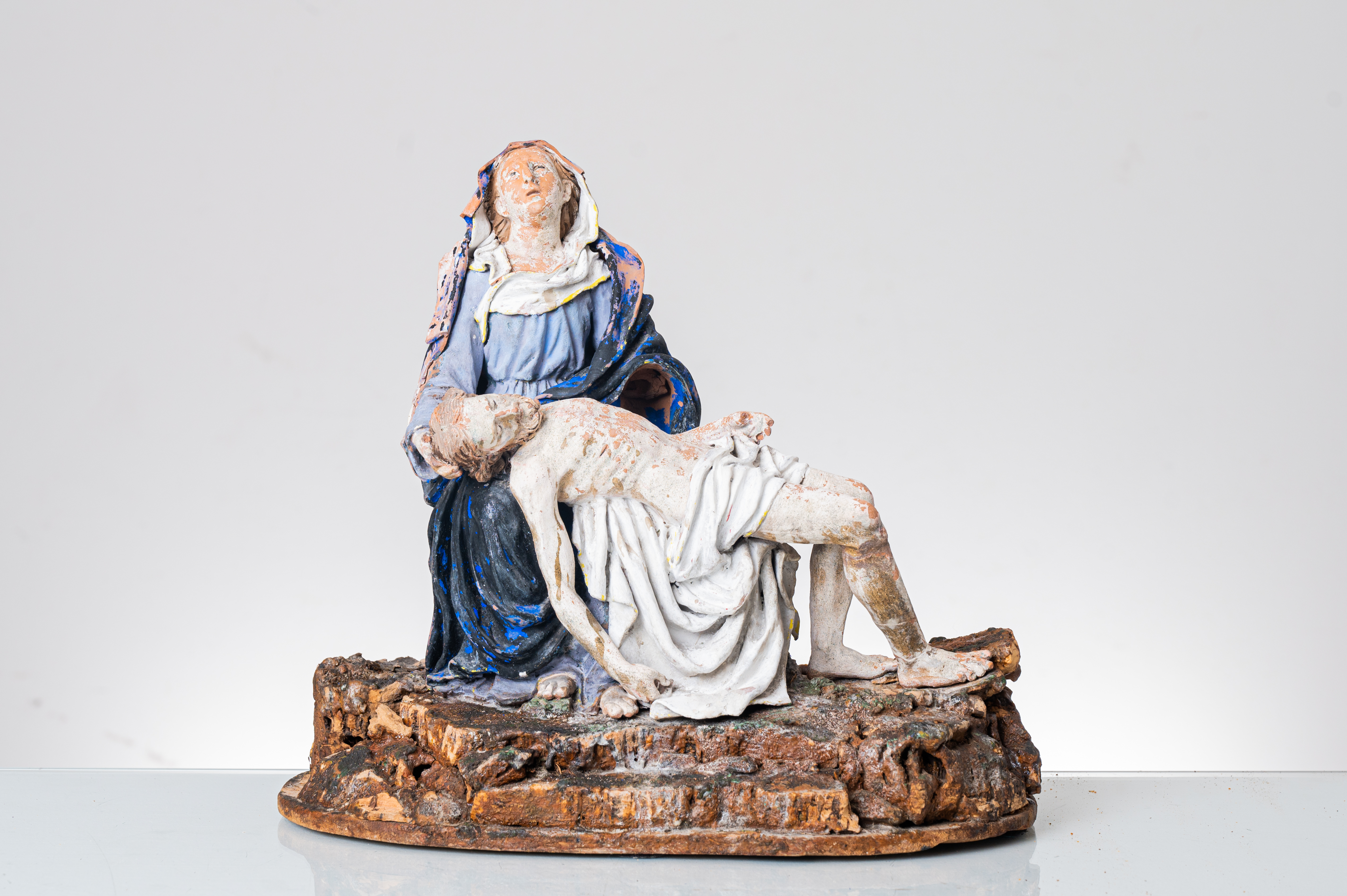 Gruppo in terracotta policroma raffigurante "La Pietà" (usure e mancanze).