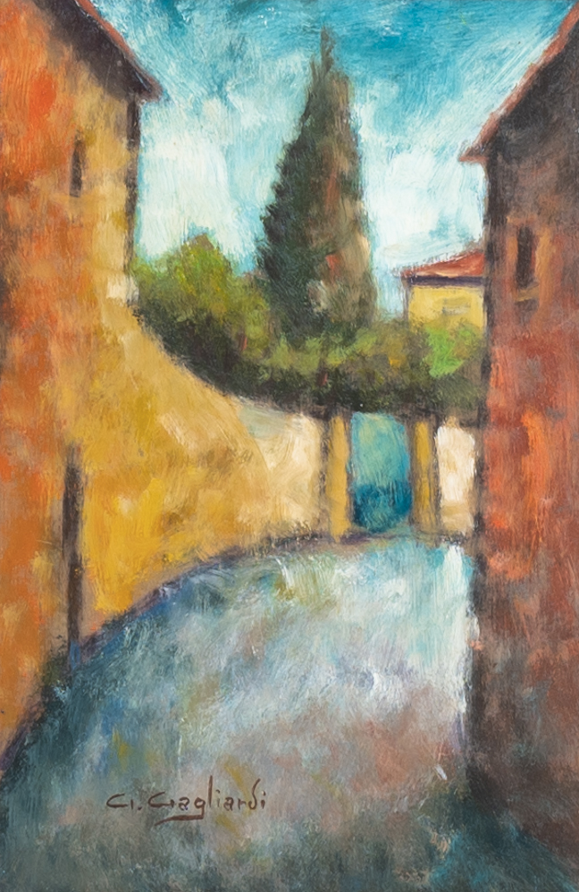 GIUSEPPE GAGLIARDI, Paesaggio, Olio su cartone