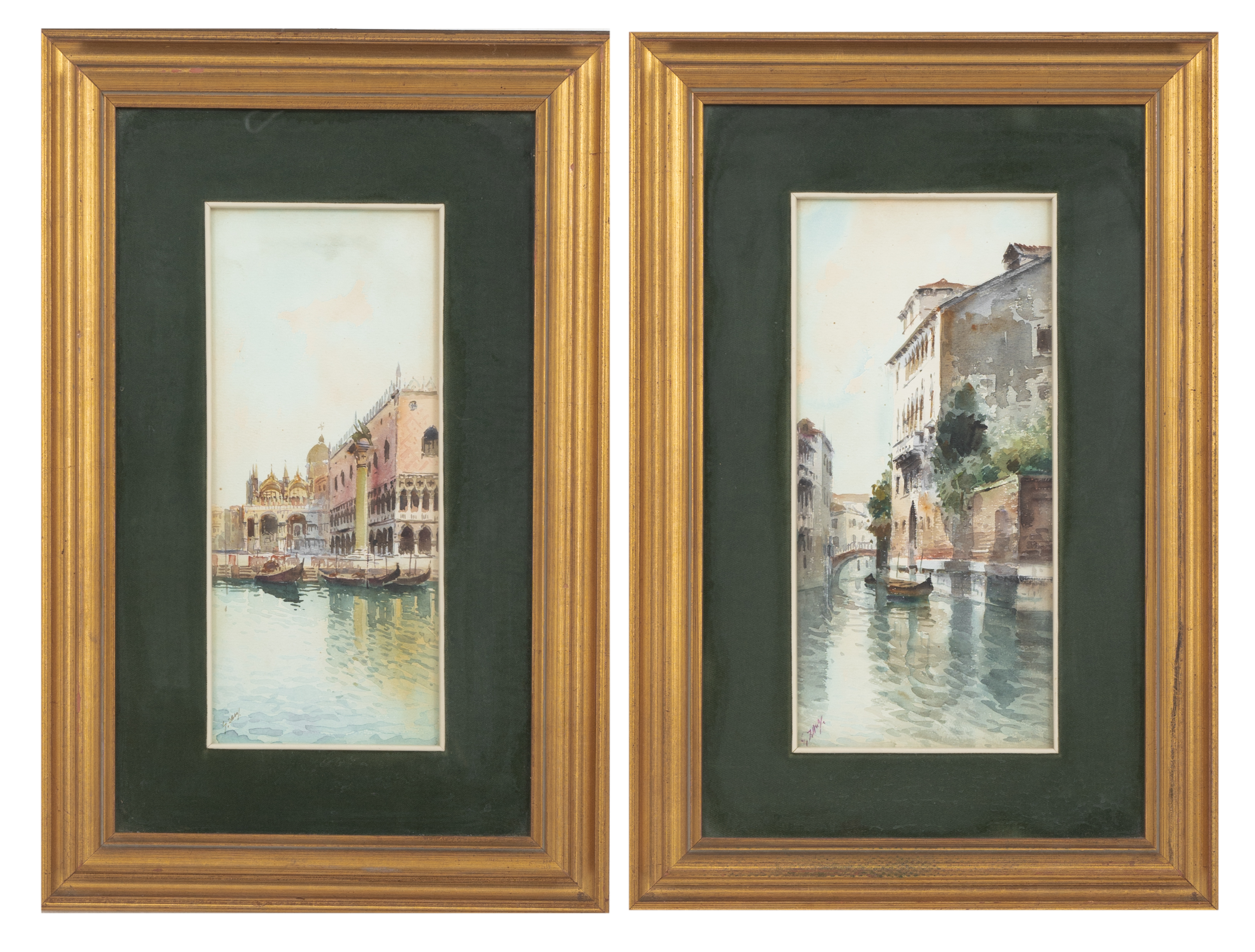 GIULIO ZAGO, Scorcio di Venezia (X2), Due acquarelli carta