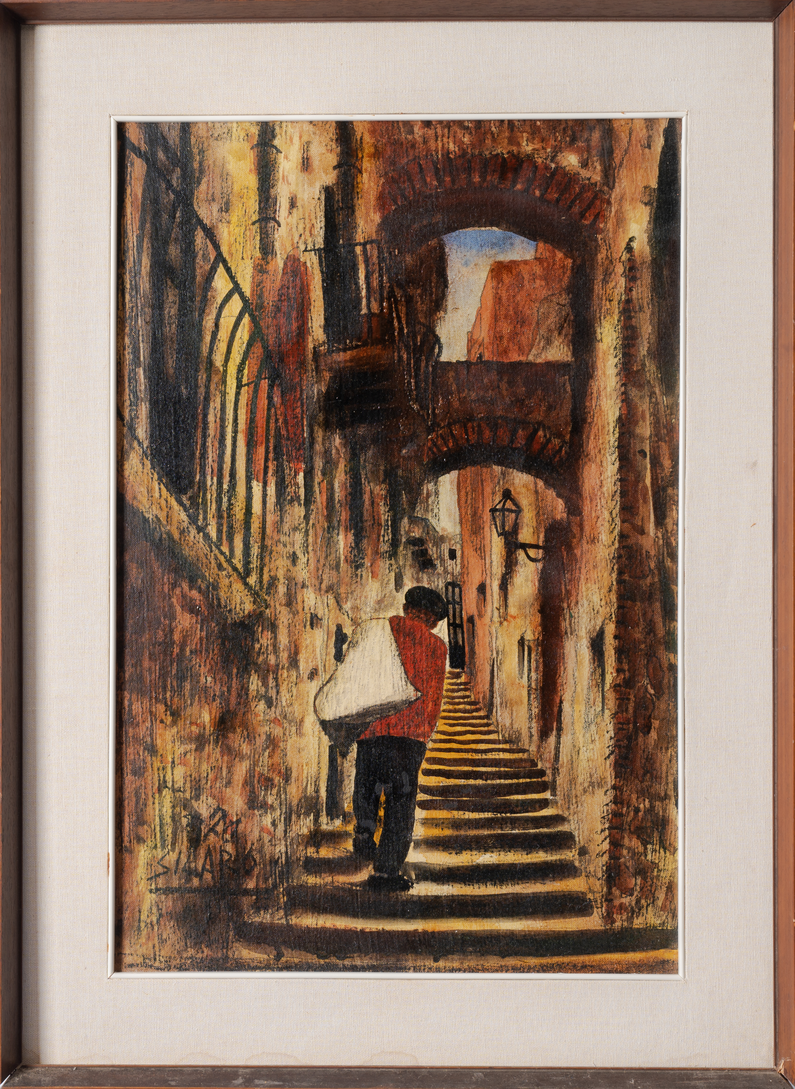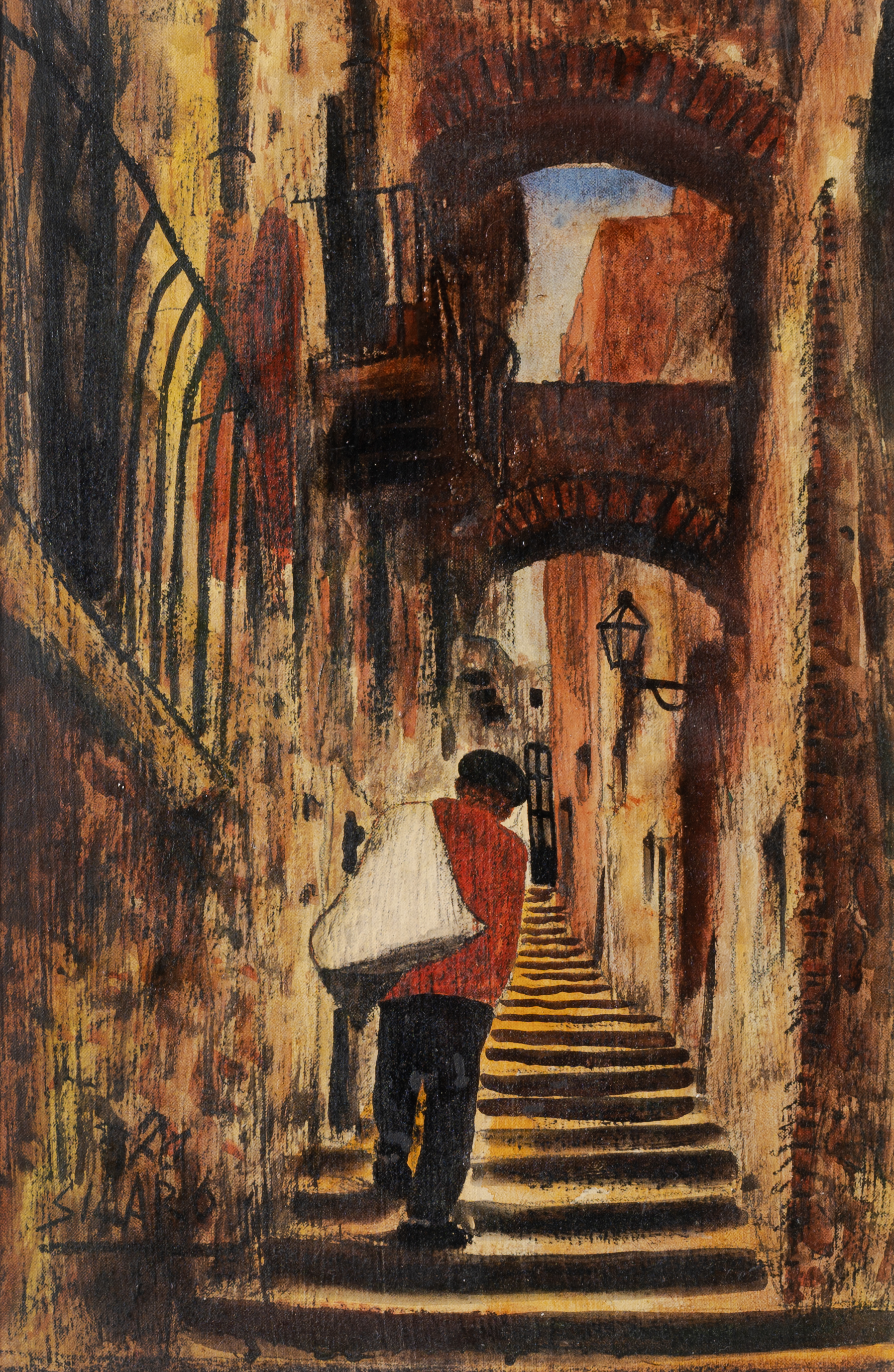 GIOVANNI SILARO, Scalinata di paese, Olio su tela