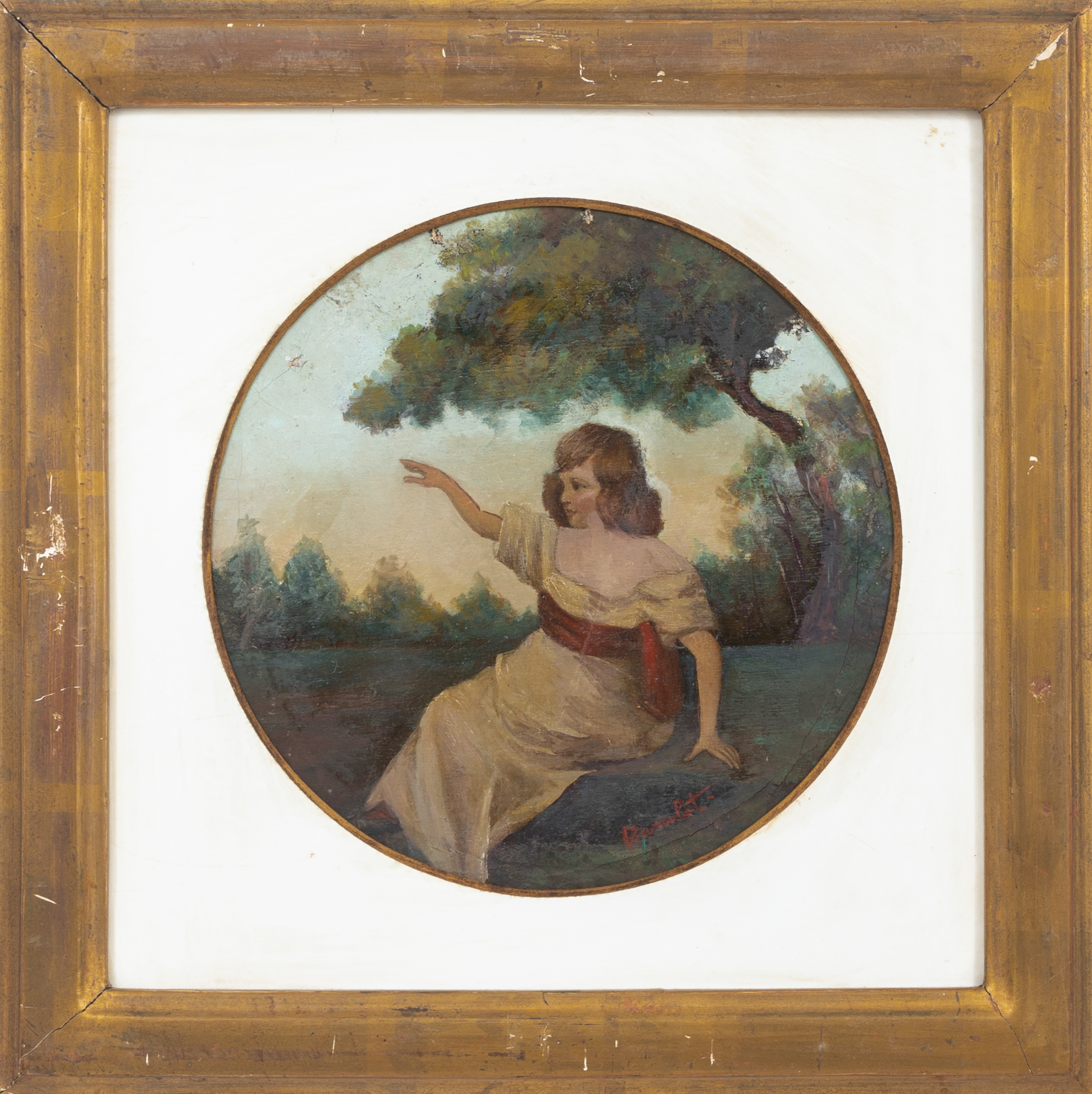PITTORE DEI PRIMI DEL '900, Olio su tela di forma circolare