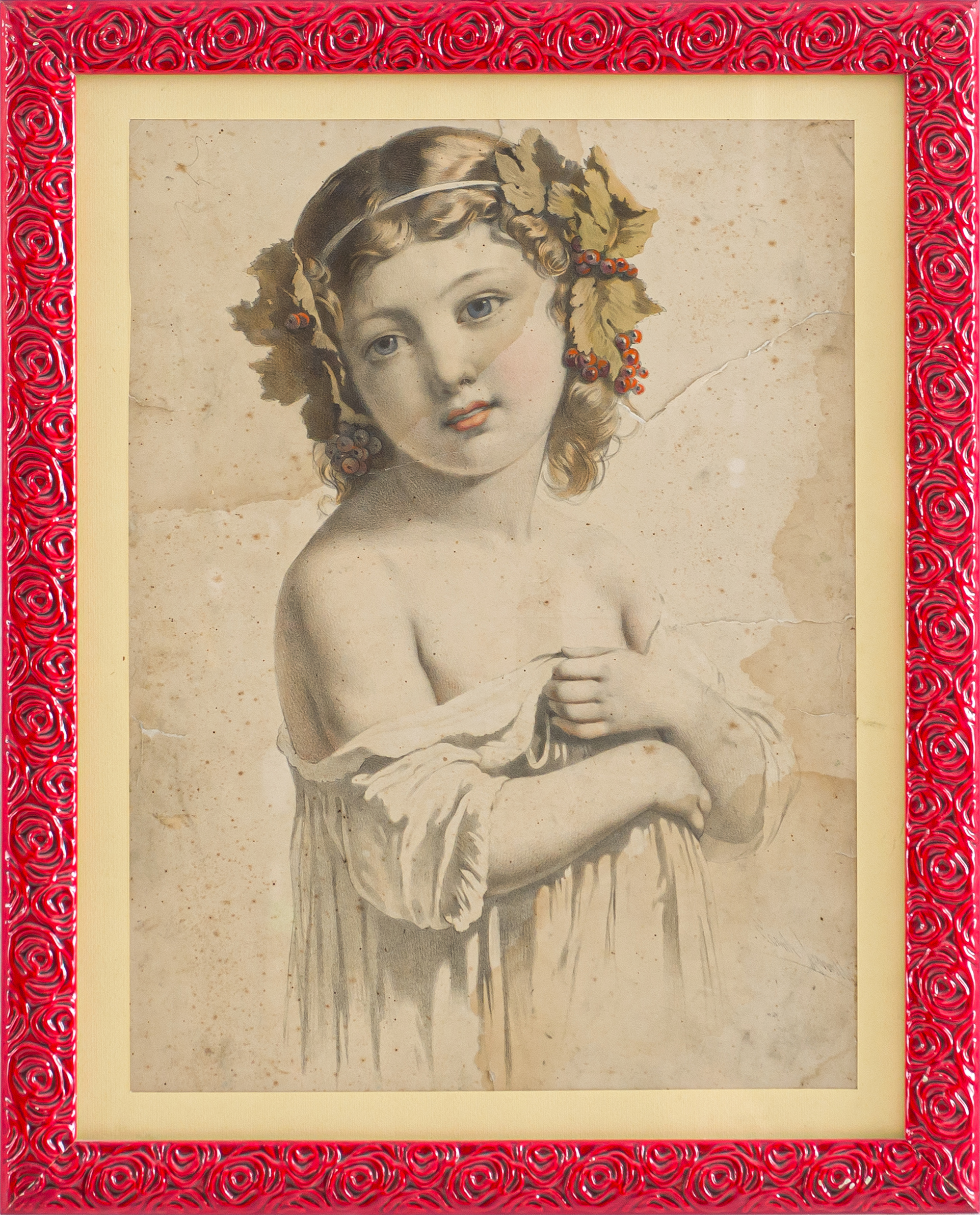 Giovane fanciulla con ghirlanda sul capo