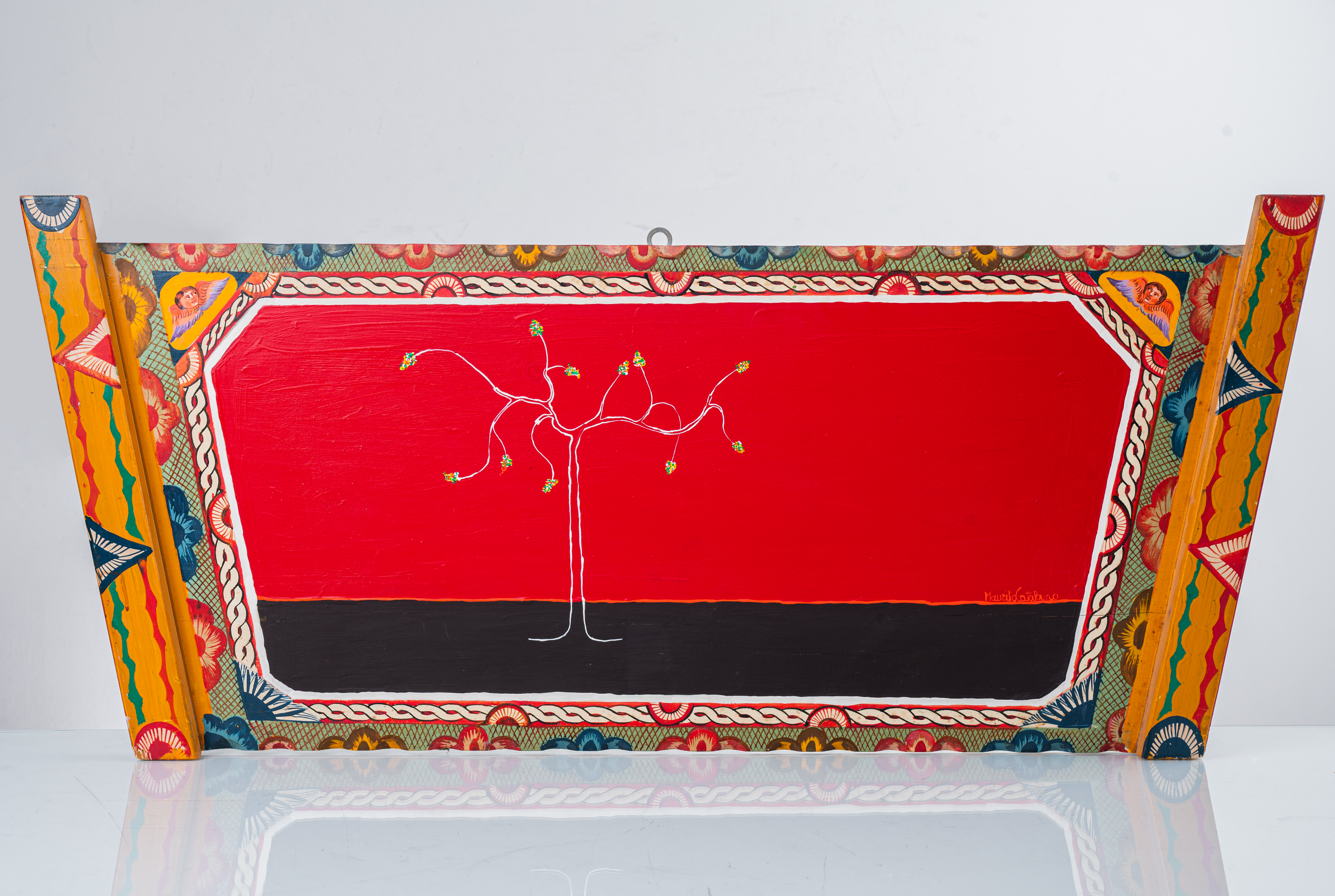 Sponda di carro decorata e dipinta ad olio raffigurante "Albero"