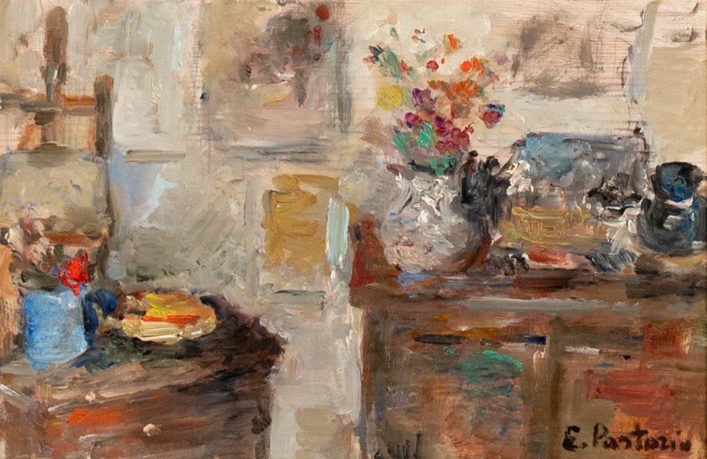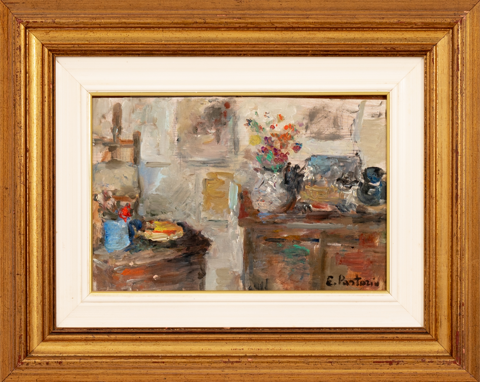 EZIO PASTORIO, Interno nello studio, Olio tavola