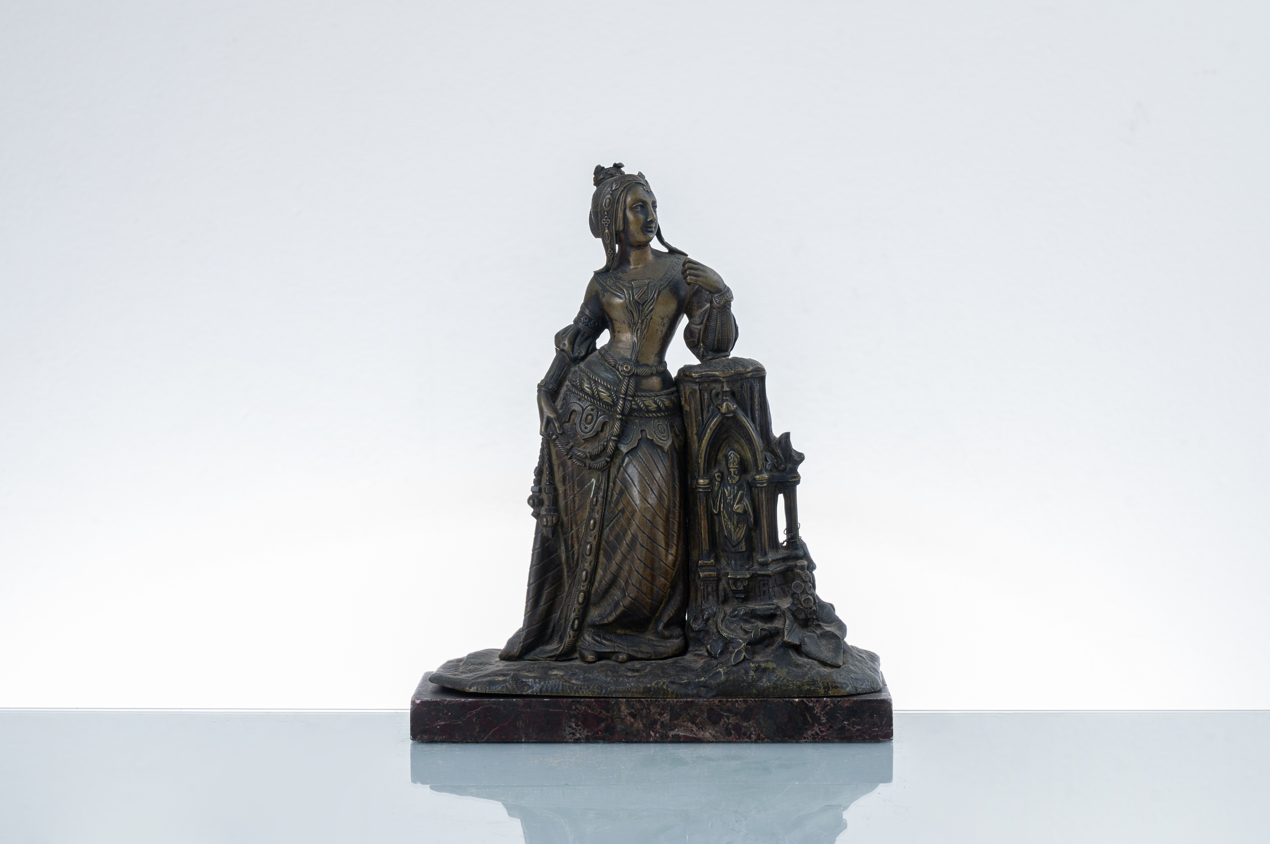 Scultura in bronzo brunito raffigurante "Figura femminile", base in marmo.
