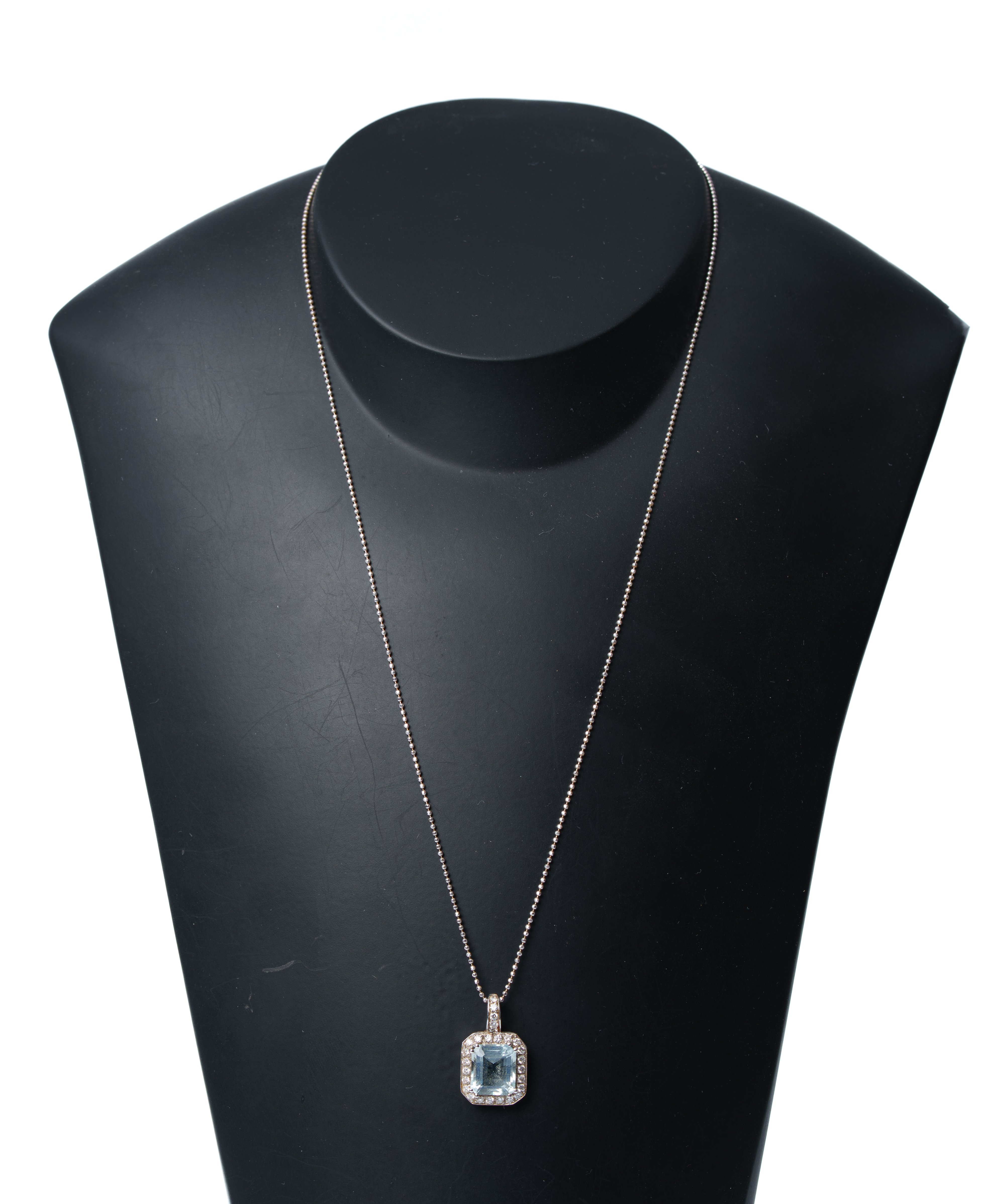 COLLANA in oro bianco 18 KT con diamanti taglio brillante ct. 0.25 peso di stima G COLOR VS e acquamarina ct. 1,80 peso di stima (g. 5,60).