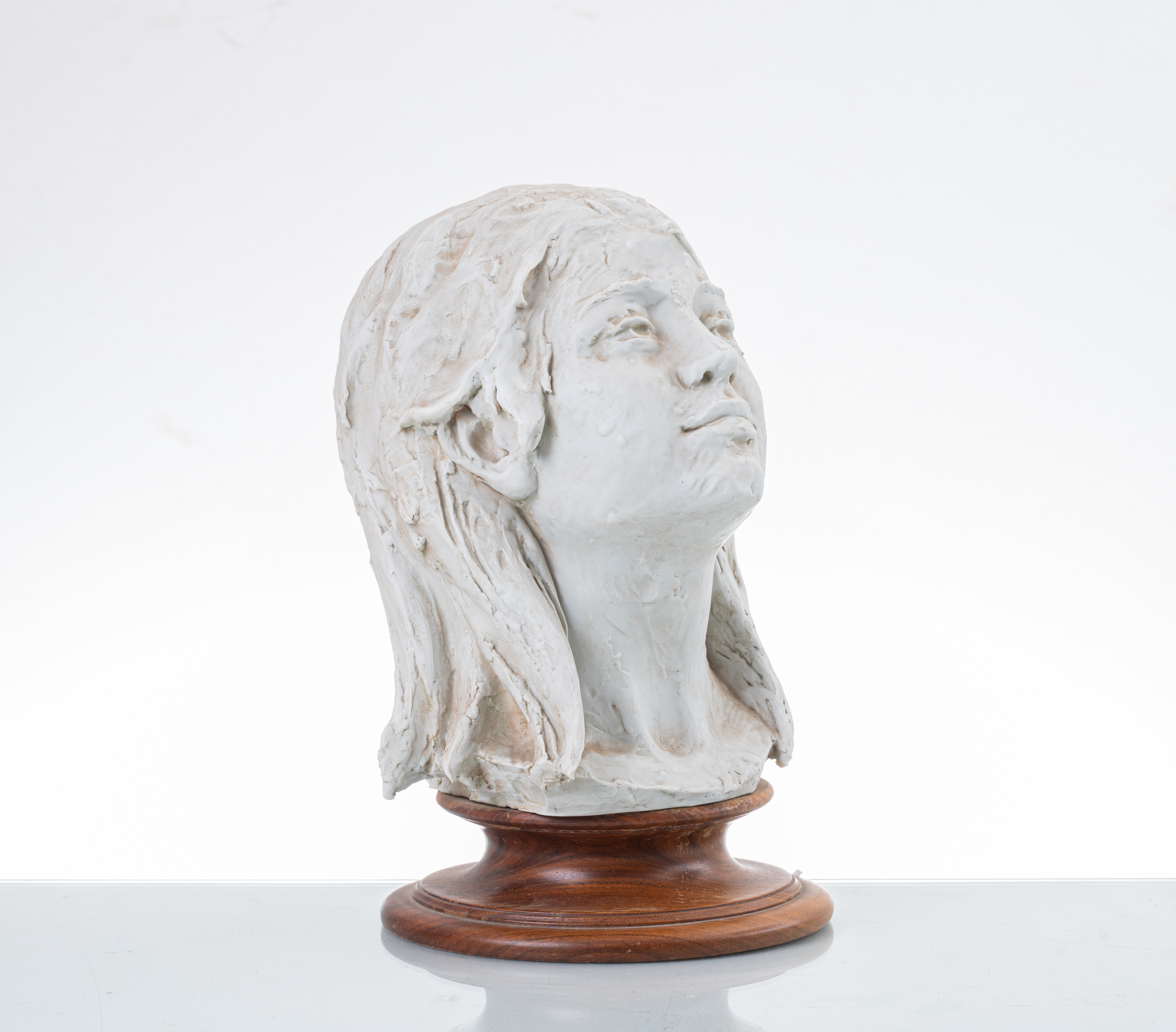 Scultura in biscuit raffigurante "Volto di donna" con base in legno. Sul retro riporta "George".