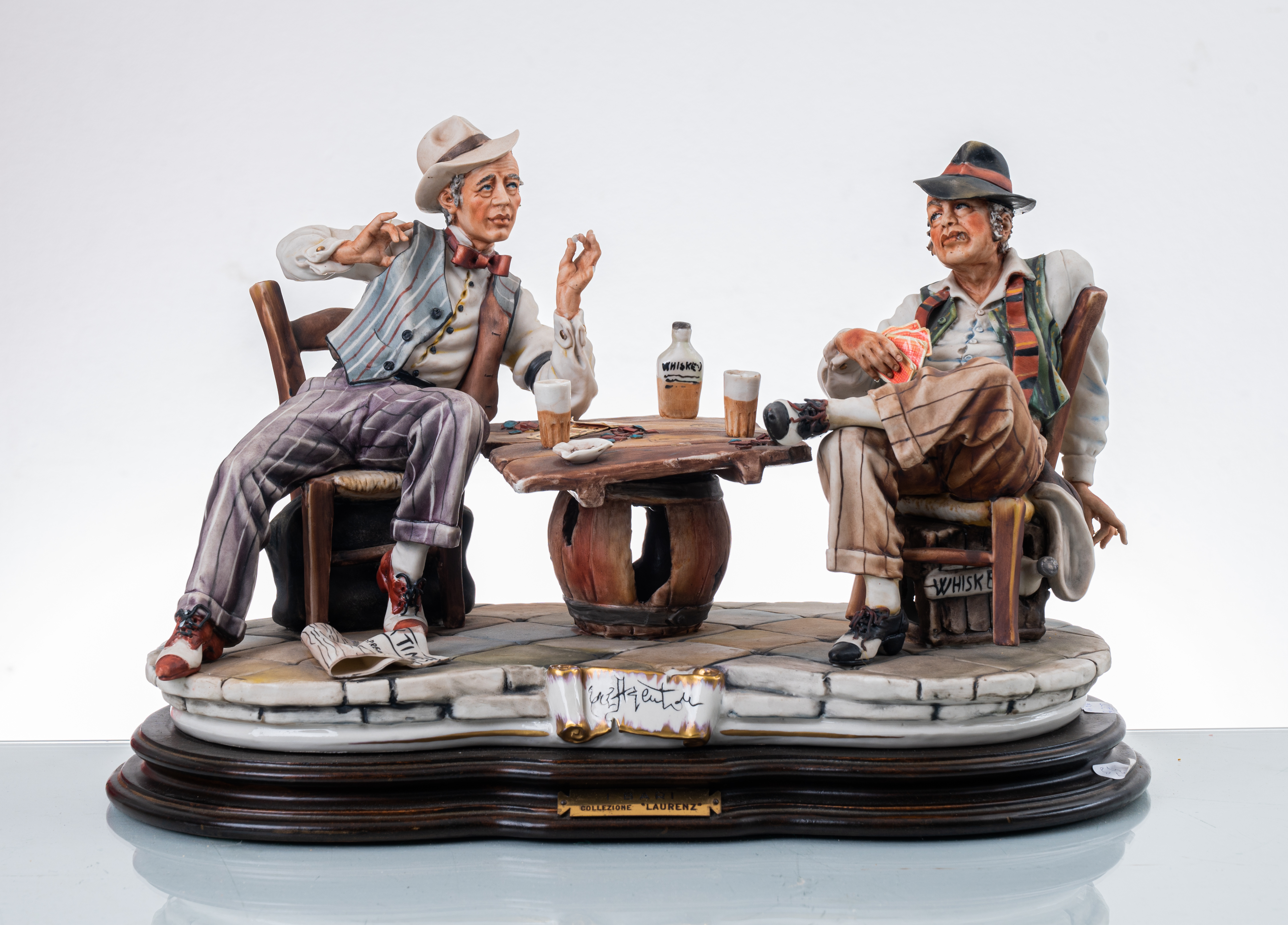 Gruppo in biscuit decorato e dipinto raffigurante "I bari".