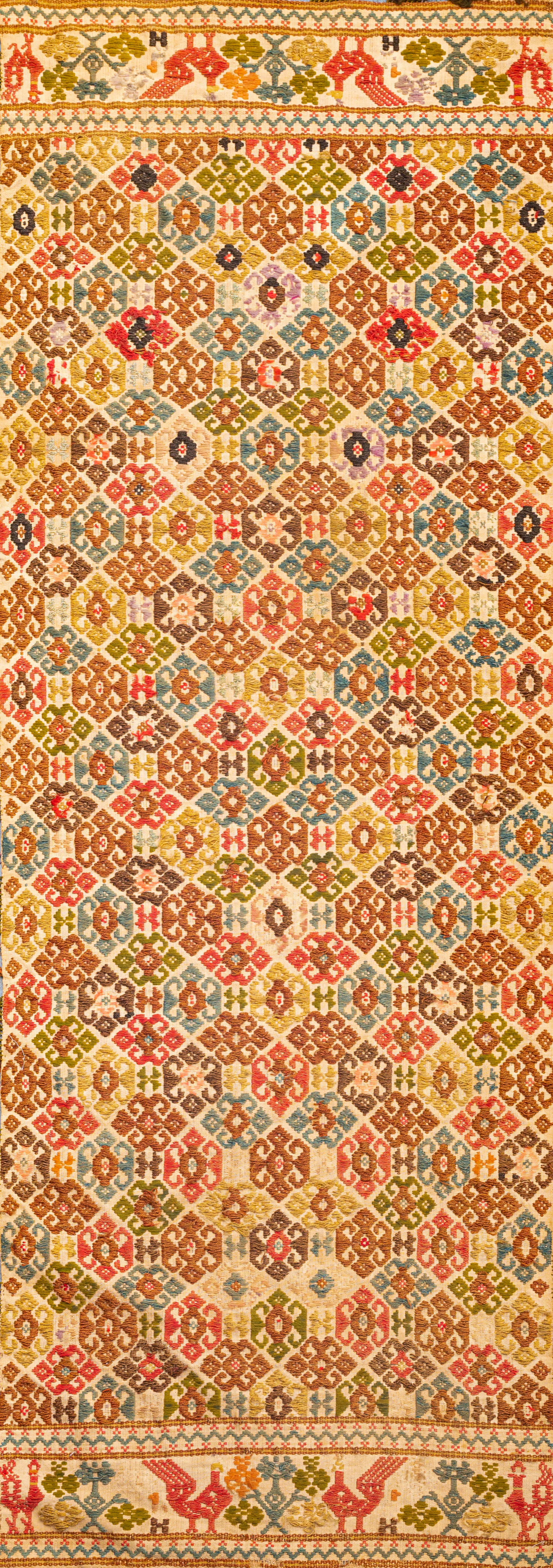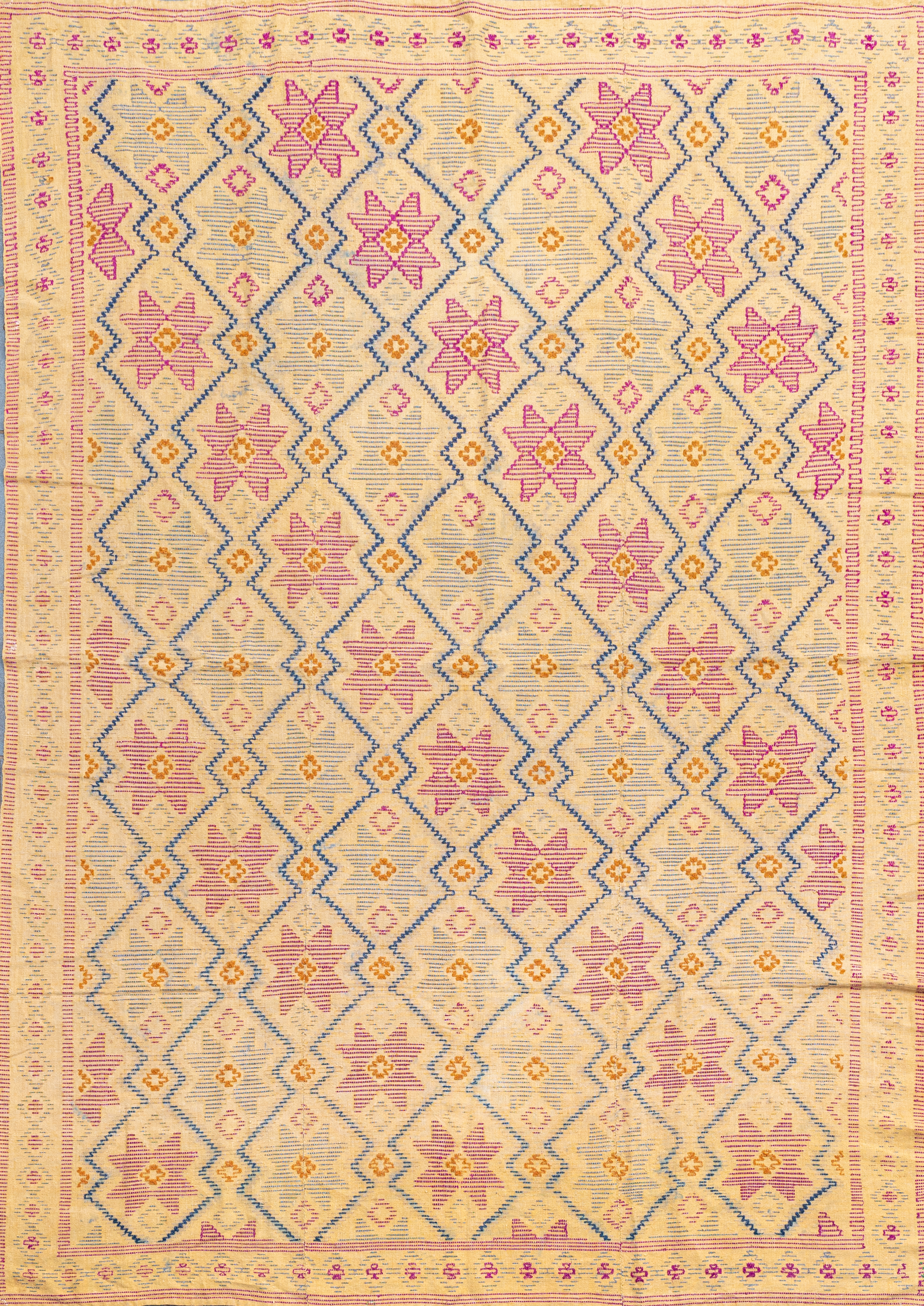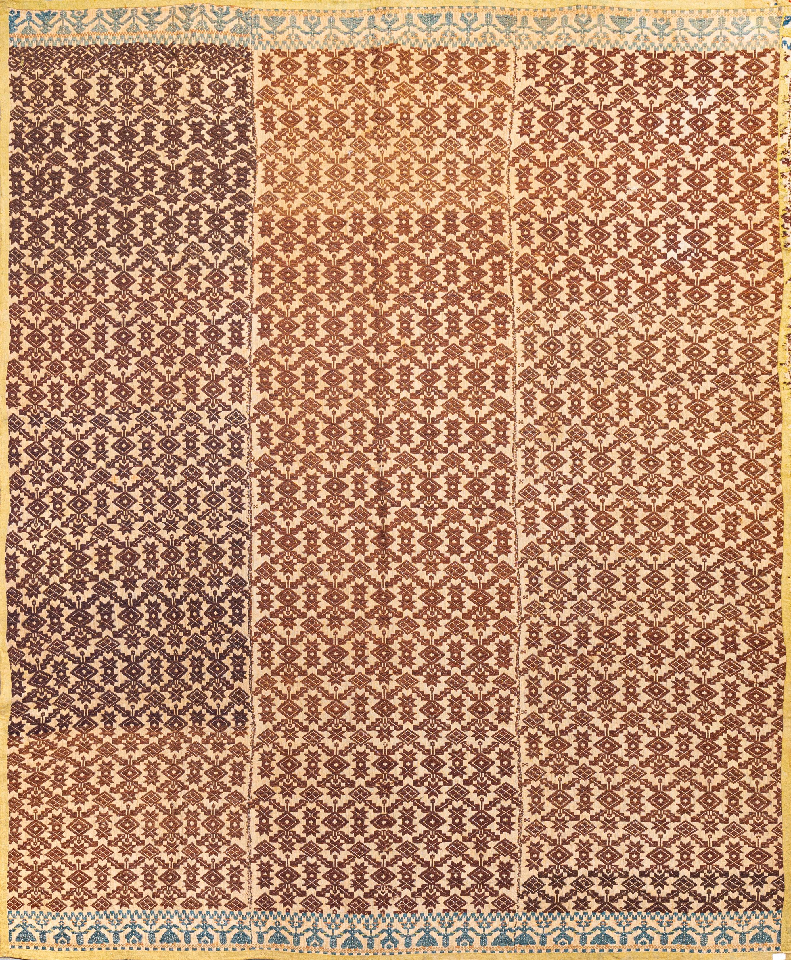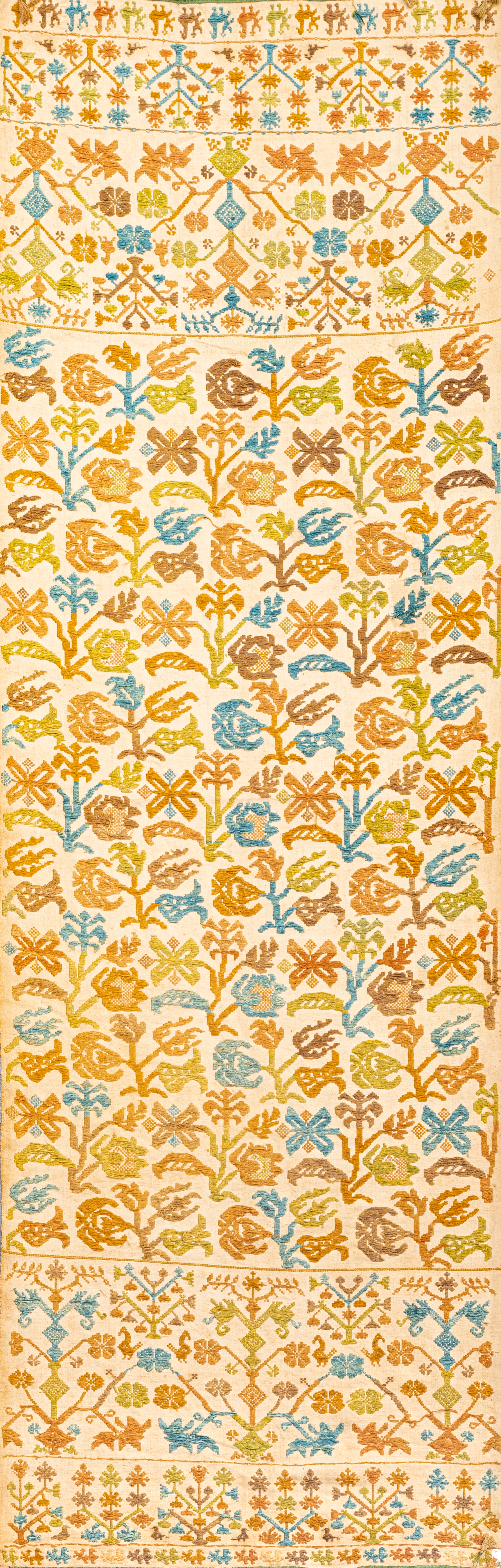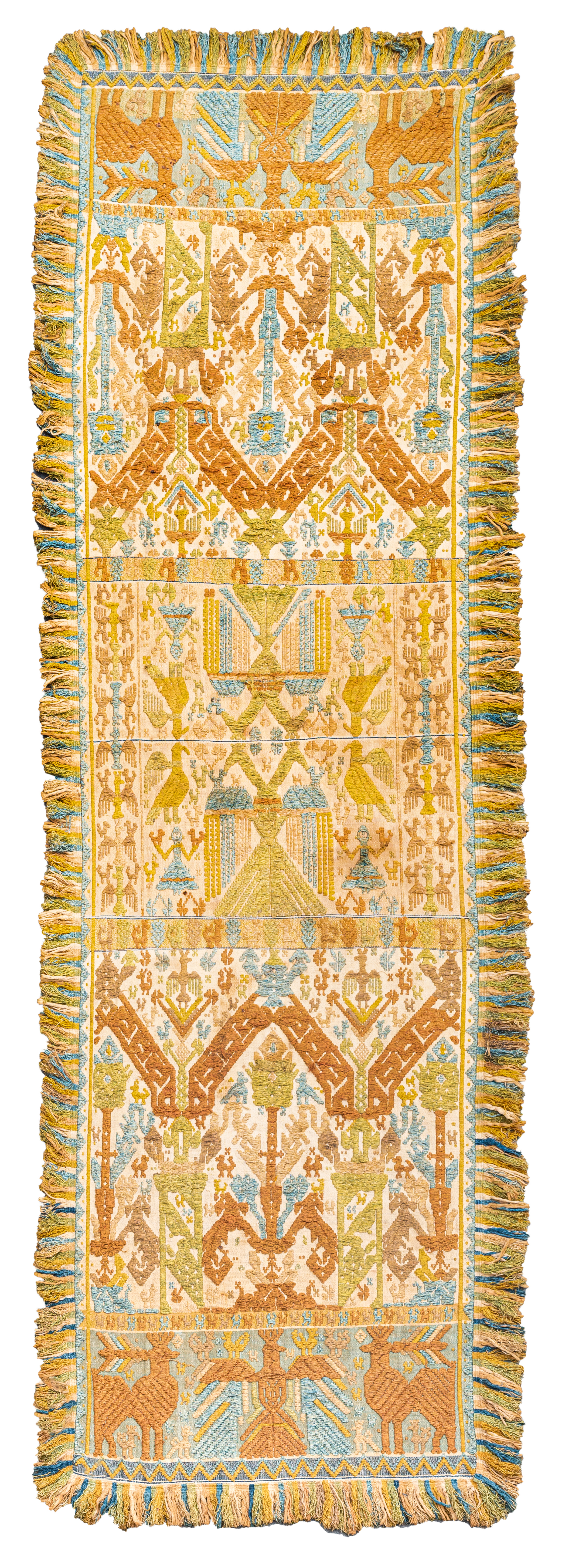 Cinque drappi in tessuto riccamente lavorato a mano.