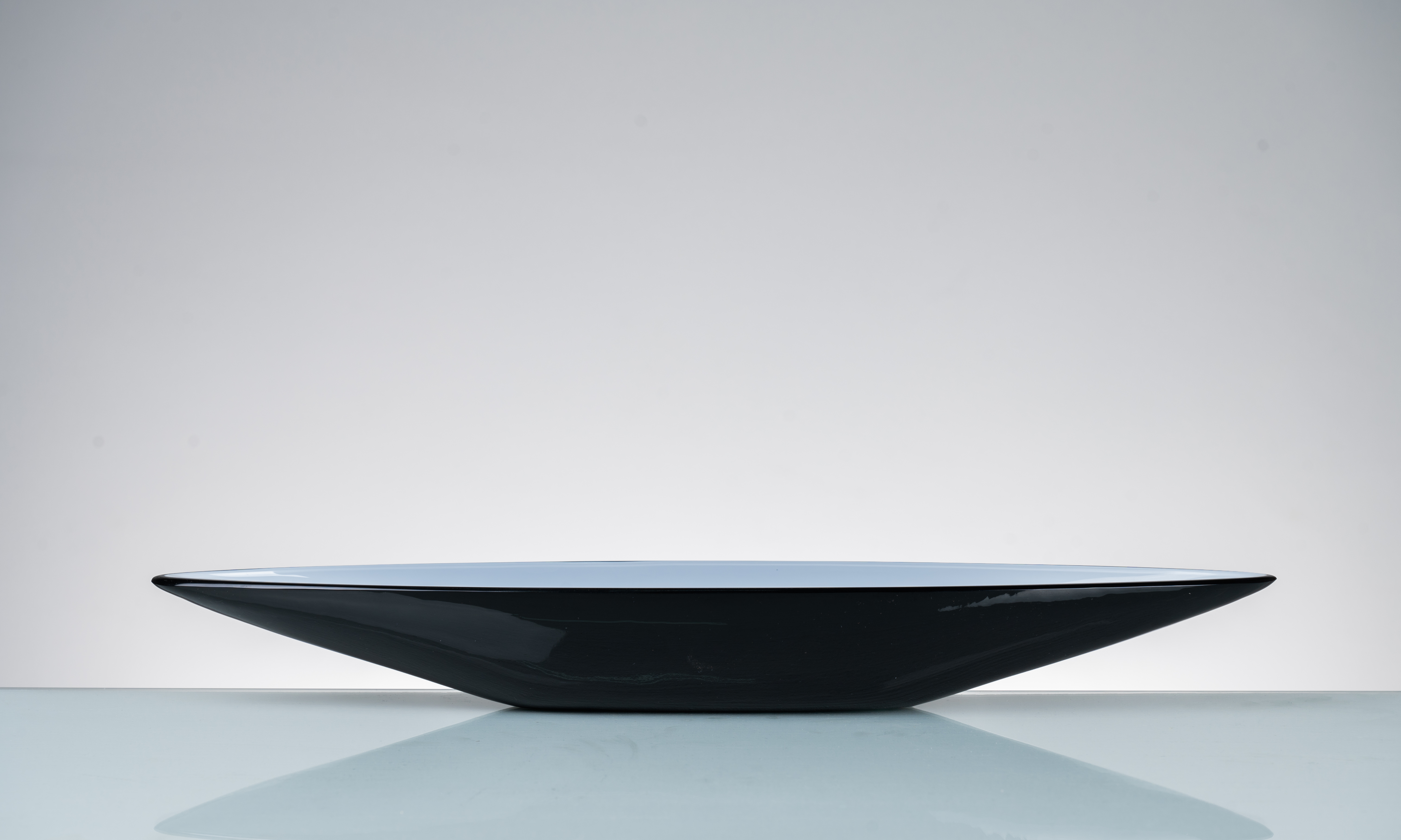 Centrotavola in vetro incamiciato nero e bianco, corpo a gondola.