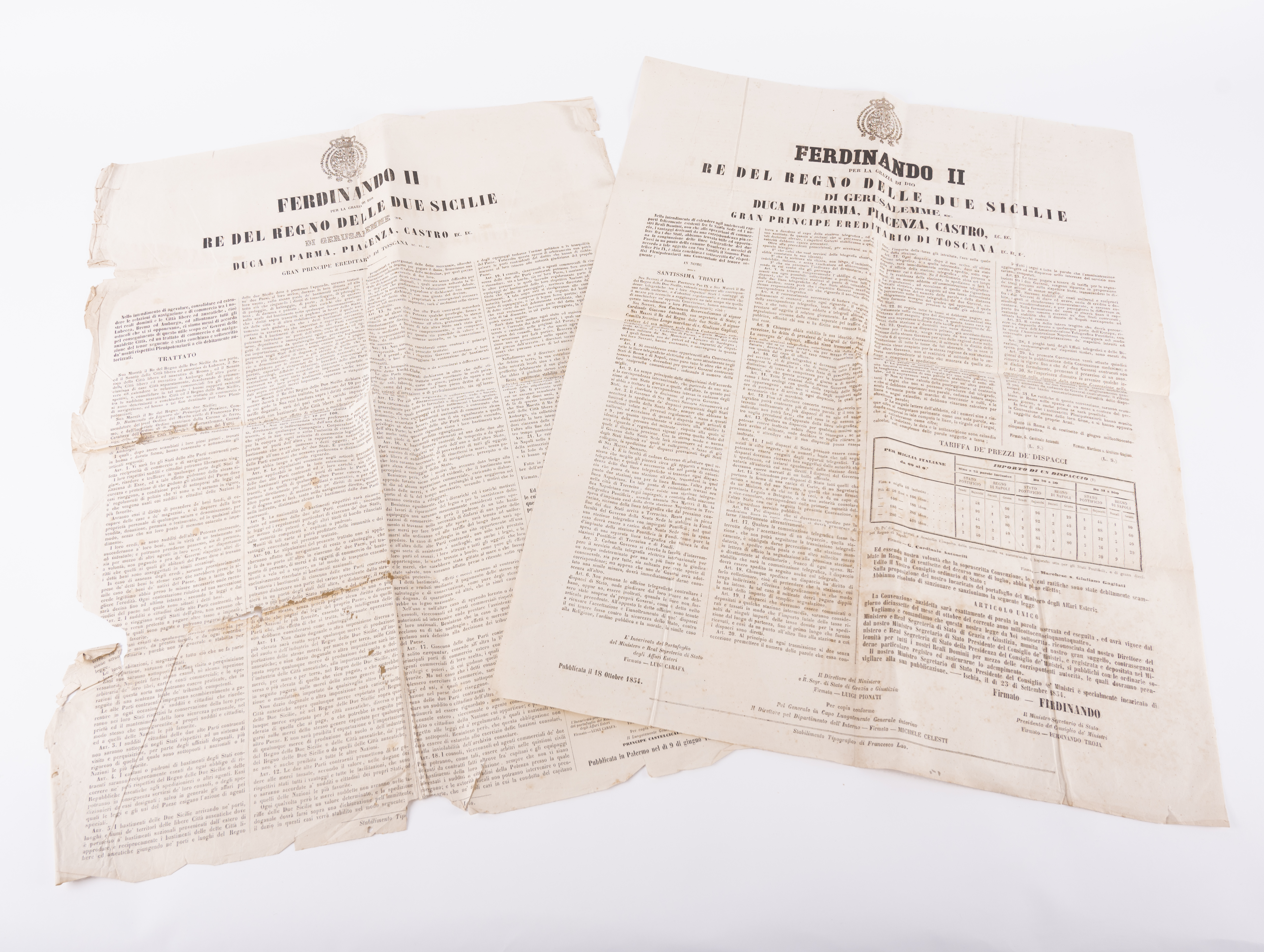 DUE DECRETI A STAMPA DEL REGNO DELLE DUE SICILIE