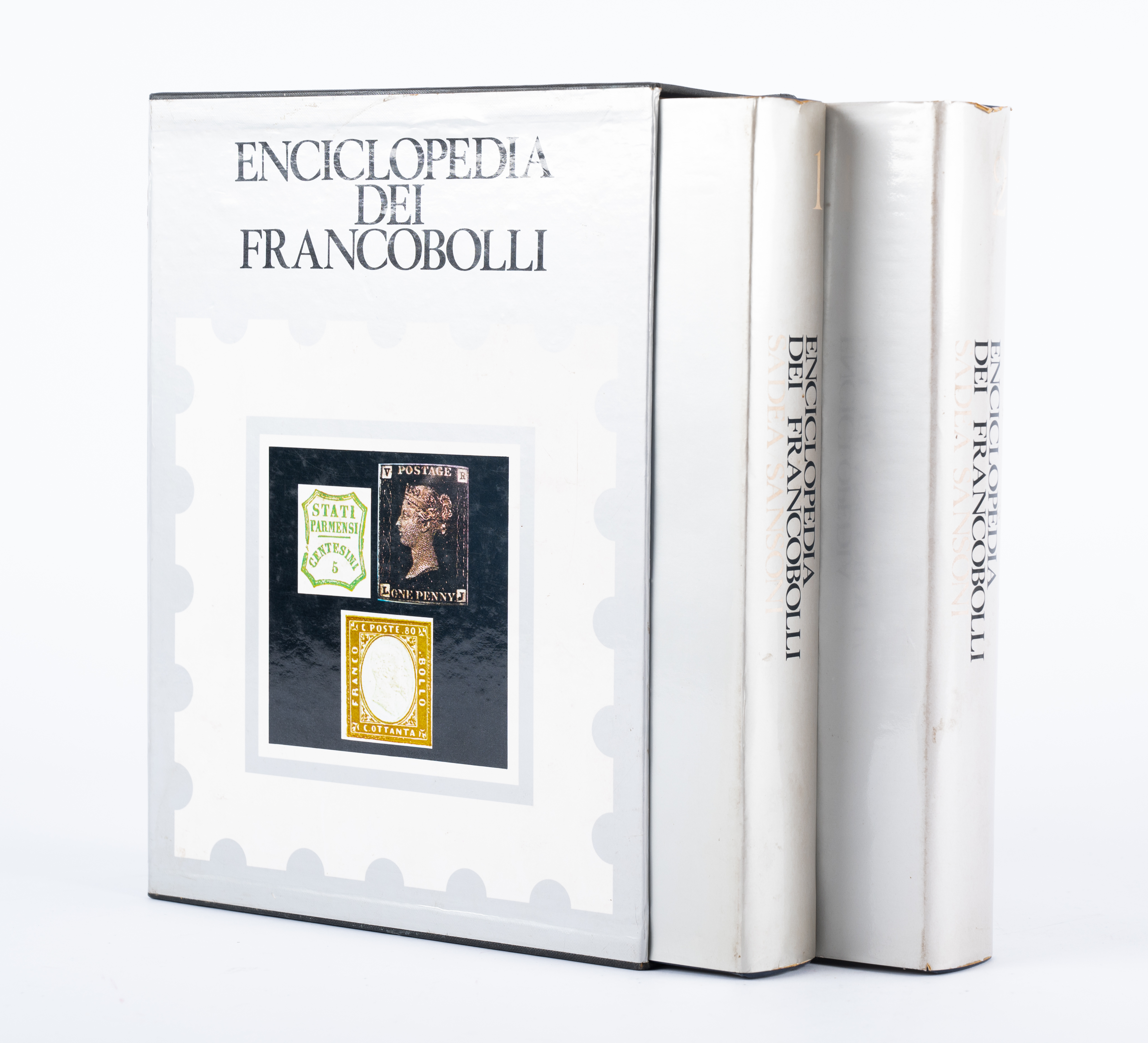 COFANETTO CONTENENTE I DUE VOLUMI DELLA ENCICLOPEDIA DEI FRANCOBOLLI, ed. Sadea / Sansoni 1968. Cm 32 x 25. Legatura editoriali coon sopracoperte editoriali figurate. Cofanetto editoriale rigido figurato a specchio. In perfette condizioni. pagine stampate su tre colonne. pp. (4), 828 continuative, (4).