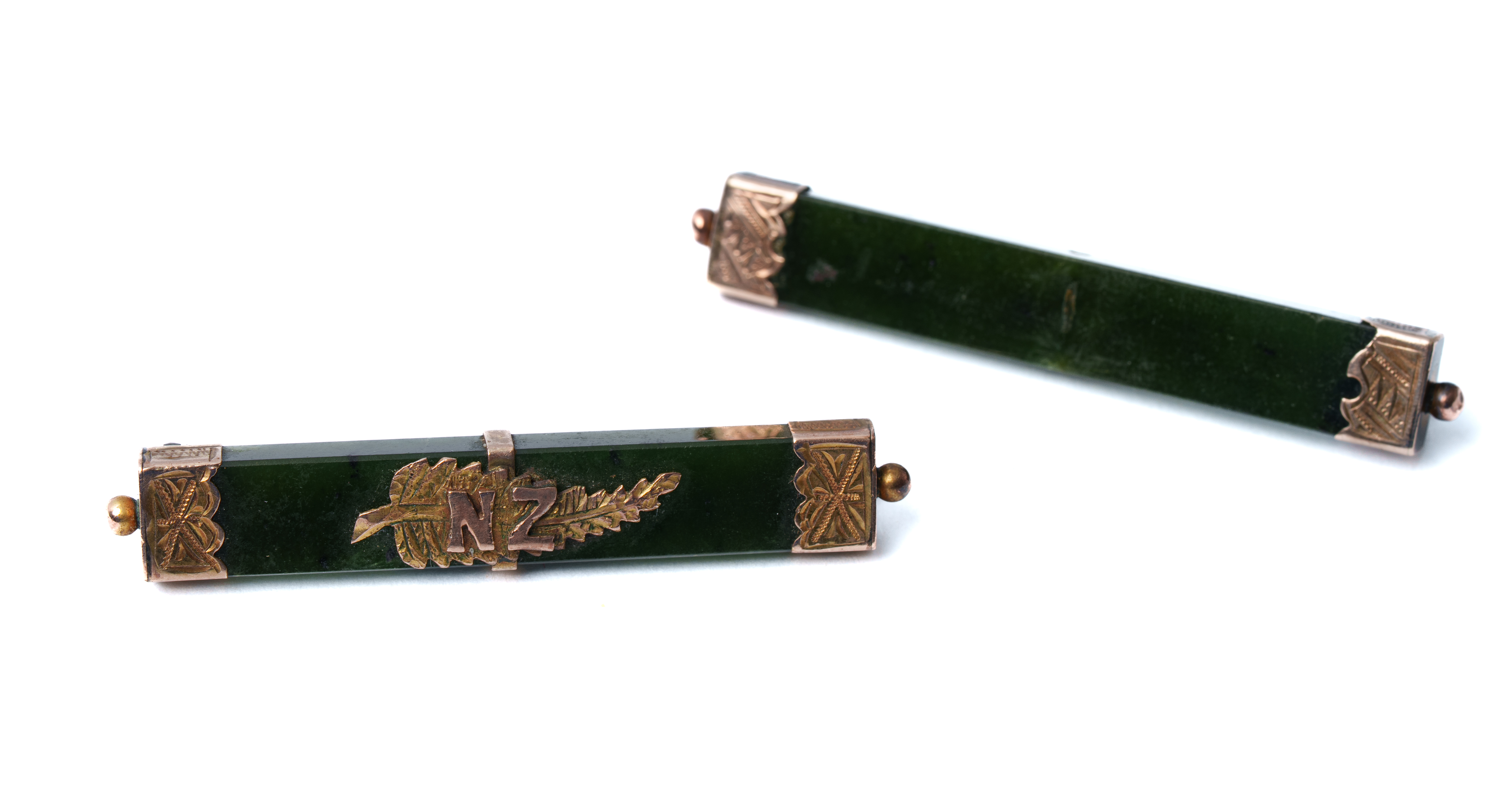 DUE SPILLE in oro giallo 9 KT e giada (g. 12,90).