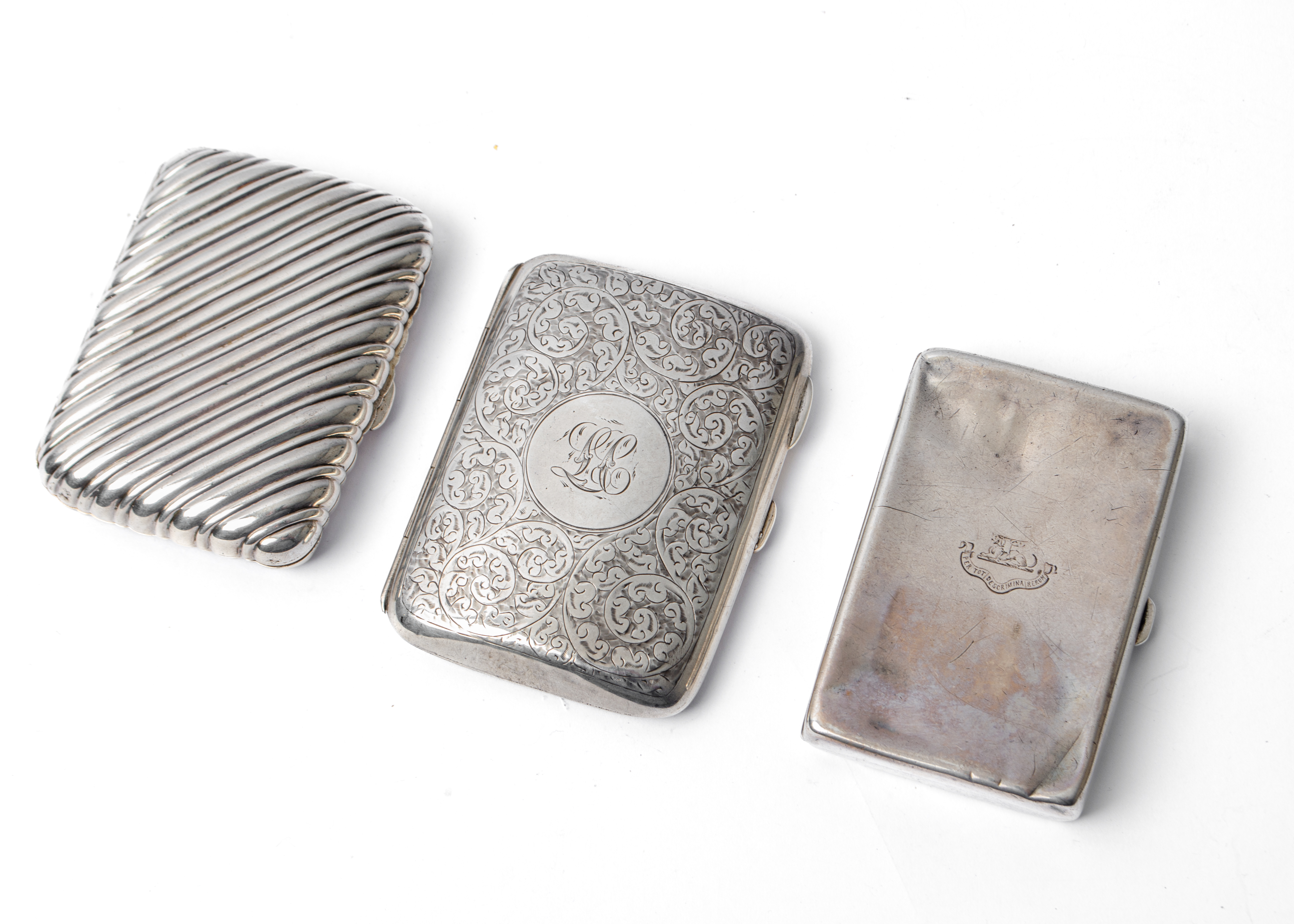 Portasigarette in argento 925 sbalzato, portasigarette in argento 925 cesellato con monogramma e tabacchiera in argento 925 (g. 218).