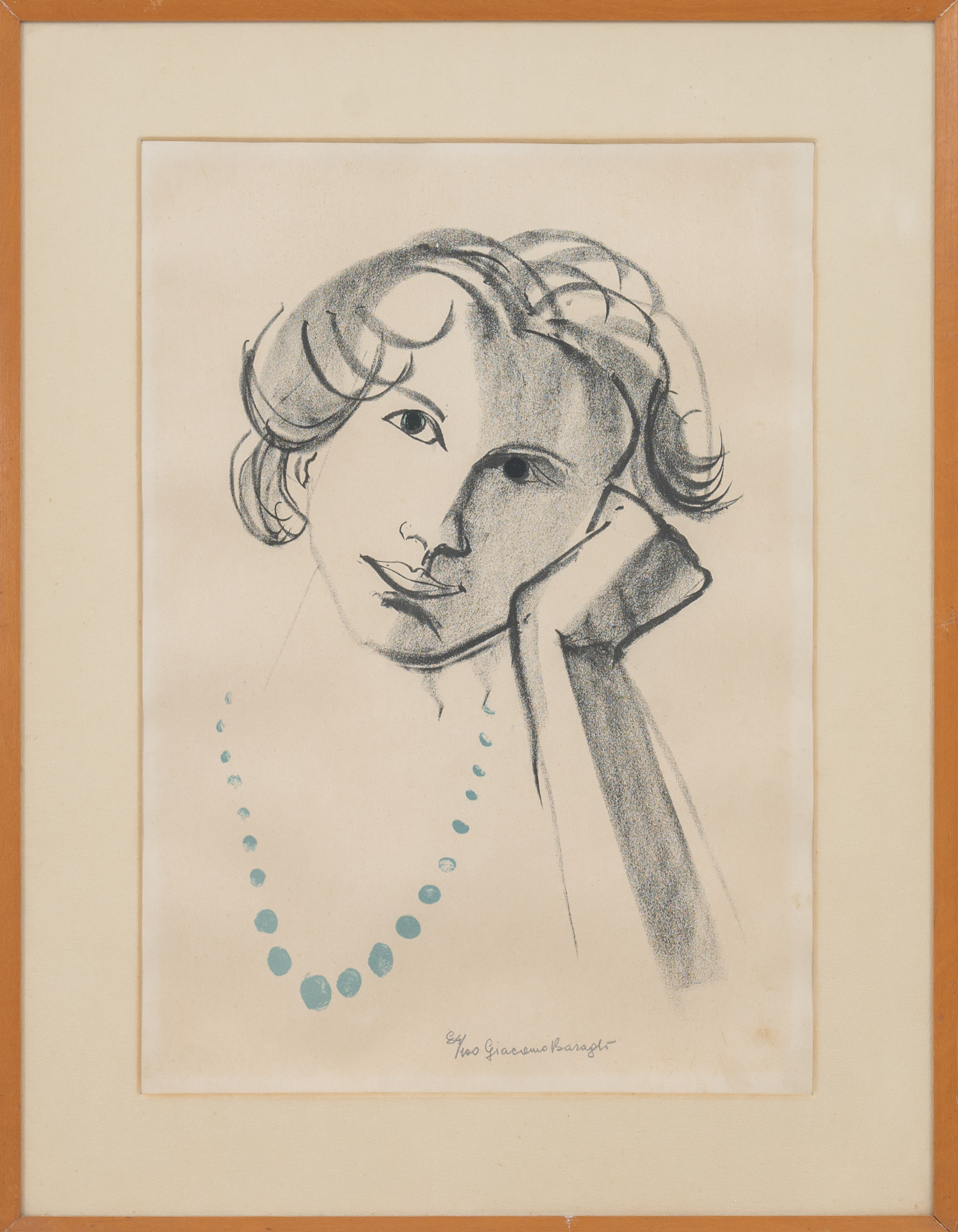 GUIDO BARAGLI, Volto femminile, Litografia