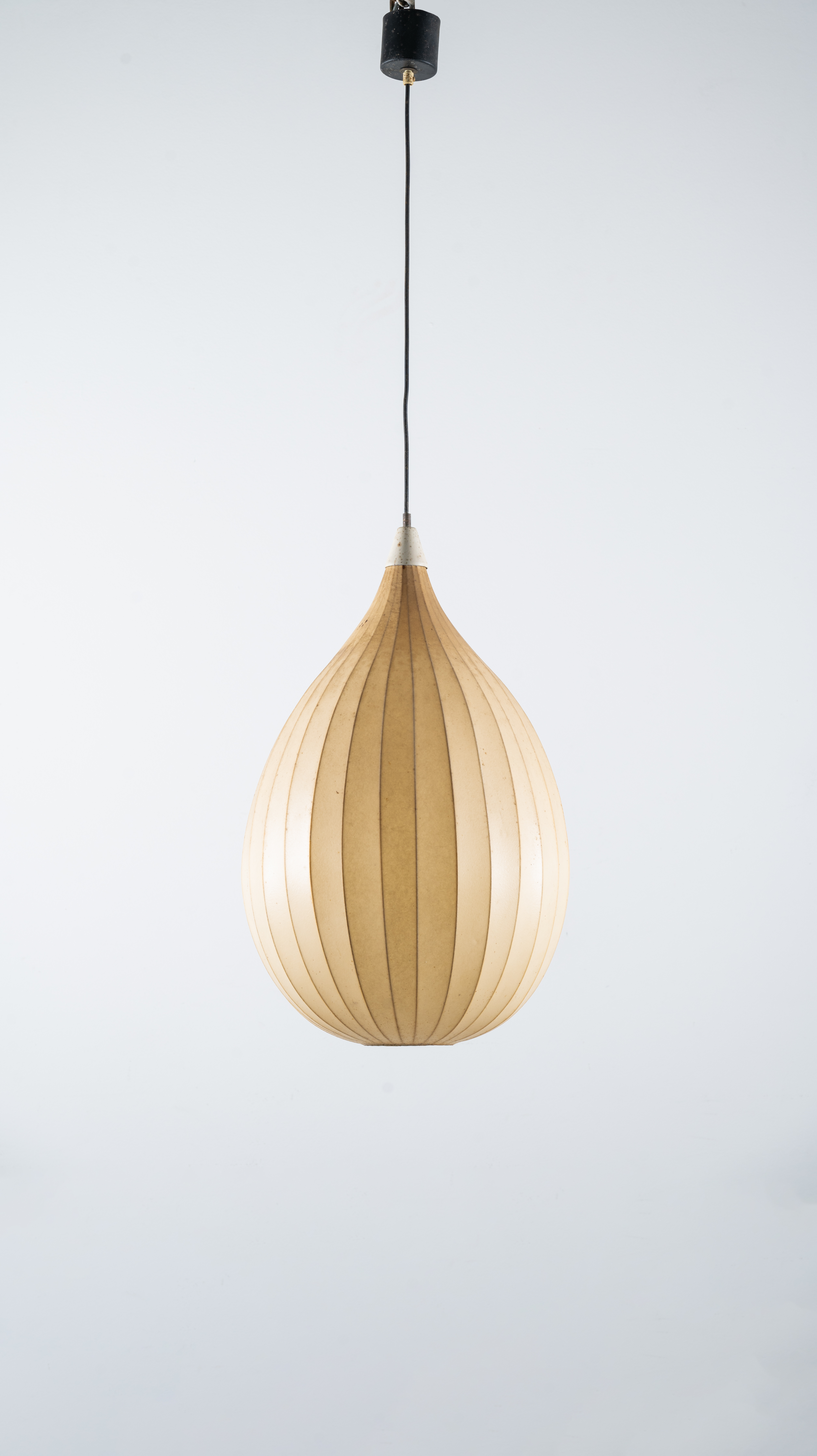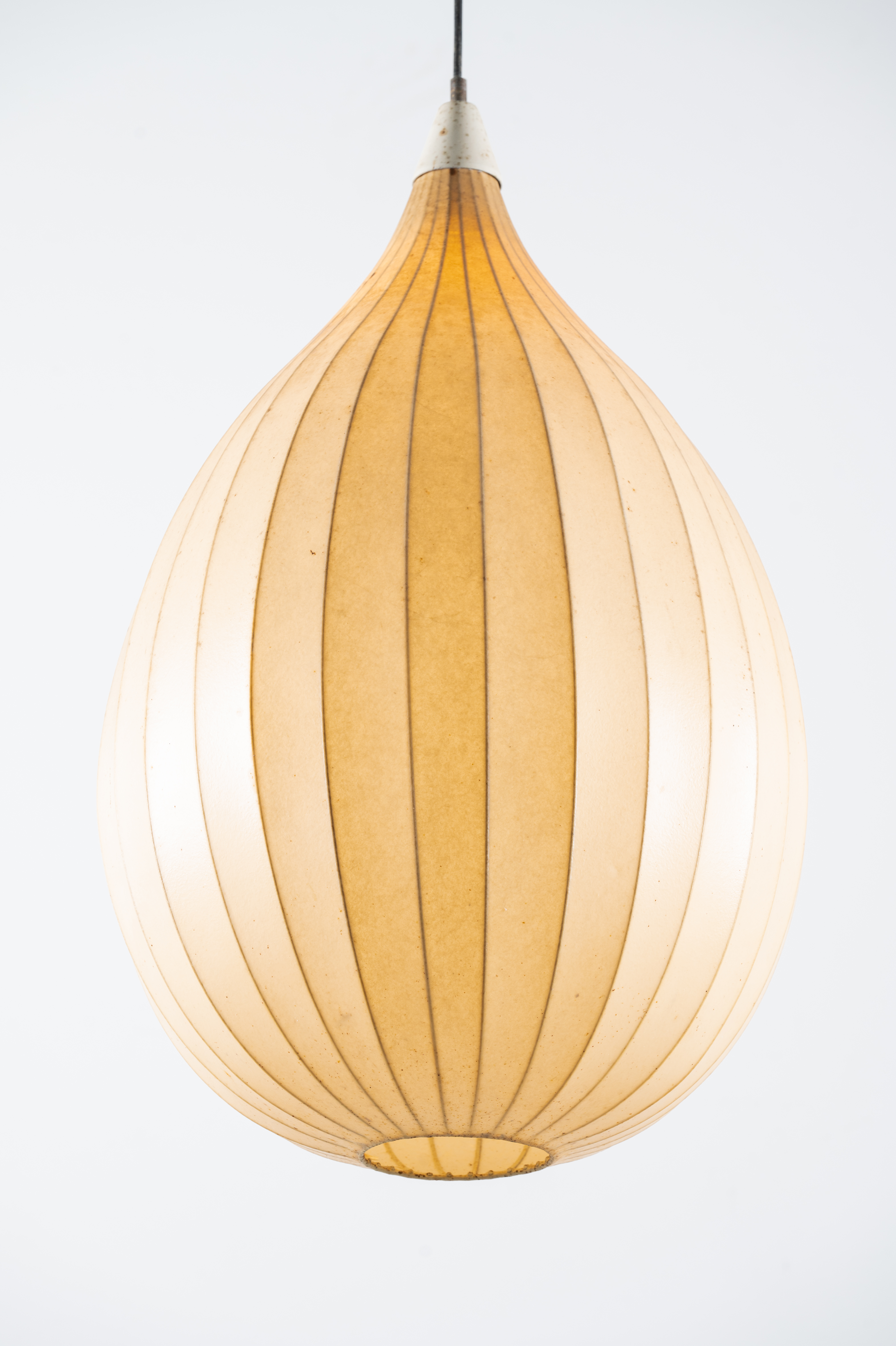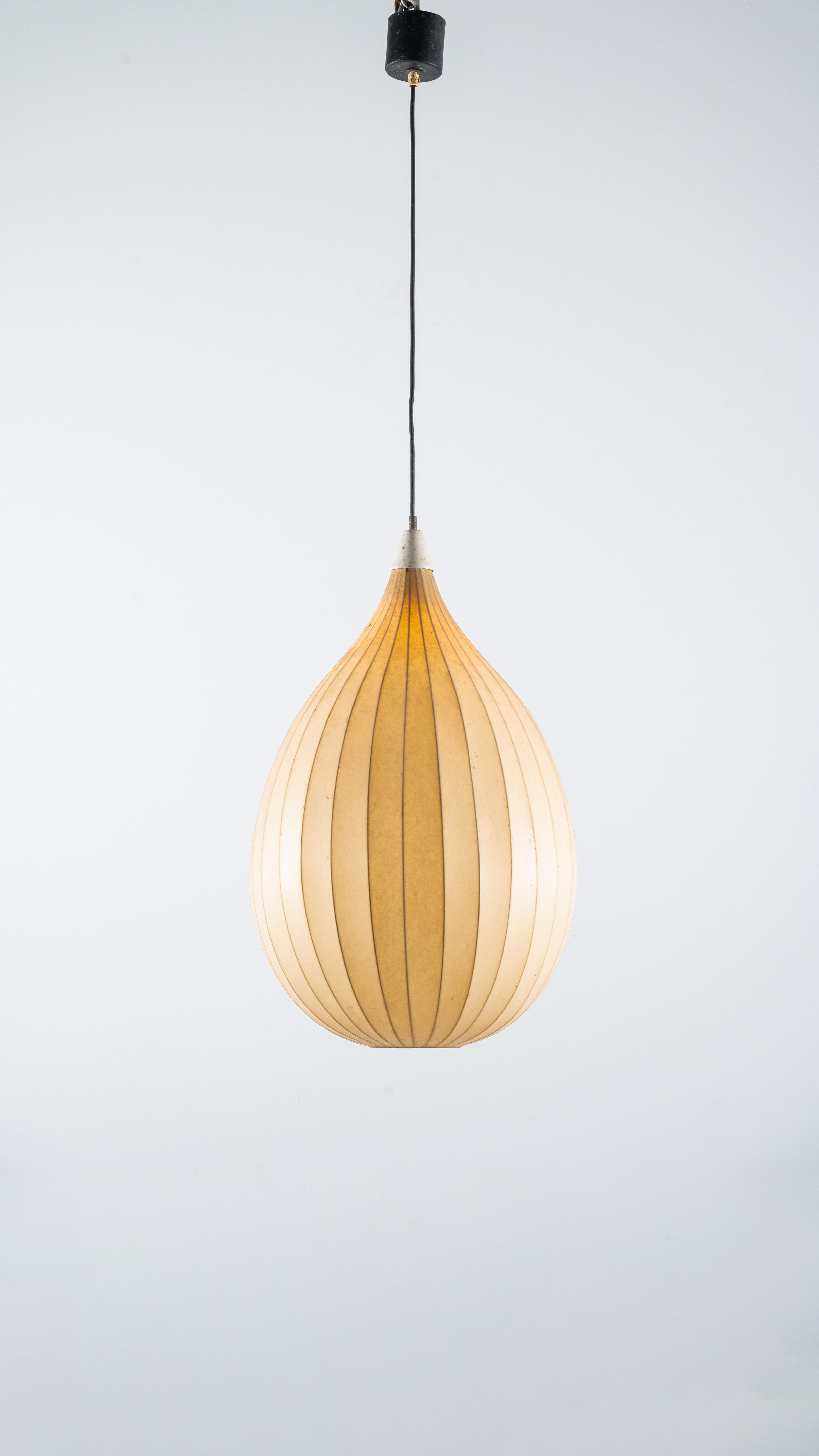 Lampada a sospensione ad una luce, struttura in metallo, corpo a goccia, rivestimento in cocoon.
