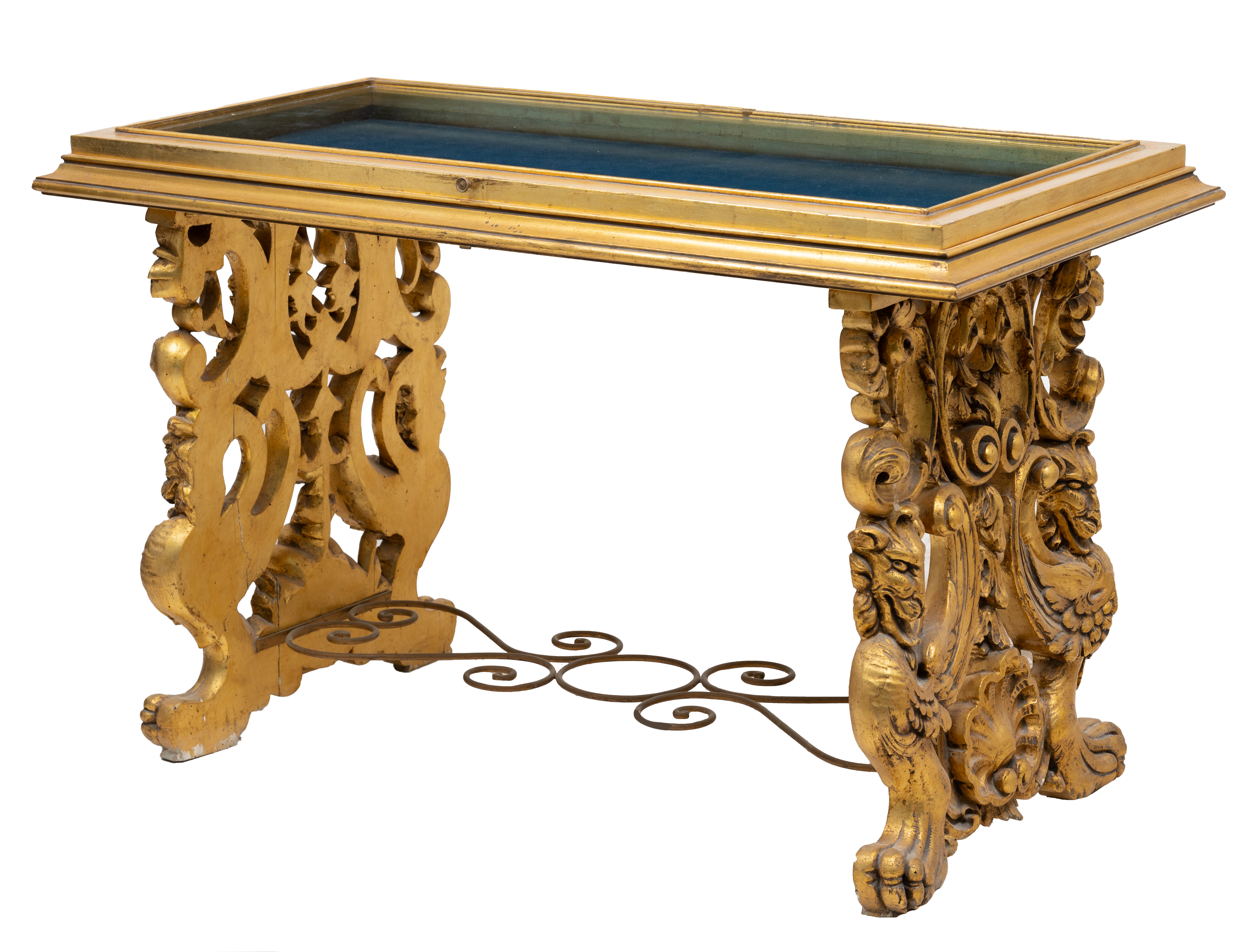 Tavolino/bacheca in legno dorato.